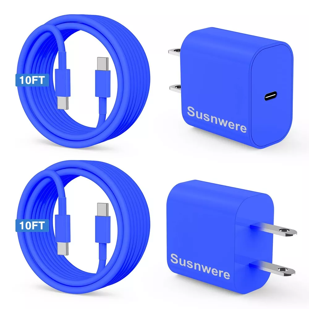 iPhone 15 Charger 10 Ft with 20w USB C Charger Block,2-Pack 20W Fast Wall Charger for 15/15 Pro/Pro Max/iPad Pro AirPods/Samsung and More, with 2 Pack 10ft USB-C Cable 【iPhone 15 Charger】20W PD USB Type C power delivery wall plug, PD adapter 3.0 Quickly Charge , USB-C port provides Max 20W output power, 3X faster than standard USB charger. charging your up to 50% in just 30 minutes for iPad Pro Charging, At 3A Maximum, Helps You Work Efficiently. 【iPhone 15 Fast Charger】The Power Delivery Wall Charger for iPad iphone owns a built-in multi-protection system, avoiding over-voltage,over-charge,over-heat, etc. The smart chip including the MFi certified lightning cable match the current required by the device automatically, charges your iPhone/iPad device fast, safely, and steadily. Tangle-free 10 Feet length is convenient for usage while charging and sync at home/office/travel in bed, hotel rooms, and more. 【USB C Fast Charger for iPad pro】With the MFi Chip, the USB-C to lightning cord equips automatic chip recognition function, full support with iOS versions.20W USB-C Charger Offers Multiple Safeguards Automatically. Multi-Charging Protection Keeps Your Device Safe From Over-Current Over-Voltage Over- Heating & Short-Circuiting. 【Broad Compatibility 】Use the official USB-C lightning cable 20W USB C wall charger to access fast-charging iPhone 15/15 Plus/15 Pro/15 Pro Max/ 2021/2020/2018 iPad Pro 12.9/11 inch,iPad Air 4, Mac Book Air 13 inch, Mac Book 12 inch, Gen 4/3, iPad Pro 11 Gen 2/1, iPad Air 4, Google Pixel 4/ 4 XL / 3a XL / 3 / XL / 2, Samsung Galaxy S8 S9 S10 S20 Plus, Note 10, LG and more. 【What You Get】2x 10FT Cable and 2 x USB-C Wall Charger. If you have any questions, please feel free to contact us. 【iPhone 15 Charger】20W PD USB Type C power delivery wall plug, PD adapter 3.0 Quickly Charge , USB-C port provides Max 20W output power, 3X faster than standard USB charger. charging your up to 50% in just 30 minutes for iPad Pro Charging, At 3A Maximum, Helps You Work Efficiently. 【iPhone 15 Fast Charger】The Power Delivery Wall Charger for iPad iphone owns a built-in multi-protection system, avoiding over-voltage,over-charge,over-heat, etc. The smart chip including the MFi certified lightning cable match the current required by the device automatically, charges your iPhone/iPad device fast, safely, and steadily. Tangle-free 10 Feet length is convenient for usage while charging and sync at home/office/travel in bed, hotel rooms, and more. 【USB C Fast Charger for iPad pro】With the MFi Chip, the USB-C to lightning cord equips automatic chip recognition function, full support with iOS versions.20W USB-C Charger Offers Multiple Safeguards Automatically. Multi-Charging Protection Keeps Your Device Safe From Over-Current Over-Voltage Over- Heating & Short-Circuiting. 【Broad Compatibility 】Use the official USB-C lightning cable 20W USB C wall charger to access fast-charging iPhone 15/15 Plus/15 Pro/15 Pro Max/ 2021/2020/2018 iPad Pro 12.9/11 inch,iPad Air 4, Mac Book Air 13 inch, Mac Book 12 inch, Gen 4/3, iPad Pro 11 Gen 2/1, iPad Air 4, Google Pixel 4/ 4 XL / 3a XL / 3 / XL / 2, Samsung Galaxy S8 S9 S10 S20 Plus, Note 10, LG and more. 【What You Get】2x 10FT Cable and 2 x USB-C Wall Charger. If you have any questions, please feel free to contact us. Shipping from the USA All of our products are shipped from the USA, ensuring quick delivery to your destination. Payment We offer the following payment methods: PayPal, credit card, bank transfer, and eBay's secure payment system. Free Shipping & Free Returns Shipping within the USA is FREE. Additionally, any return is absolutely free for you. Risk-Free Purchase You have the option to return an item within 30 days without any justification. We cover the return shipping costs! Fast Shipping We ship immediately upon receipt of payment. Generally, the package is delivered within 2-3 days in the USA. If it takes longer, we will contact you. Quality and Costs Made in Europe, USA, China No customs fees or additional charges Total satisfaction guarantee Invoice with declared VAT available upon request in .pdf format Feedback Your feedback is very important to us. After you pay for your purchase, you will automatically receive positive feedback from us.