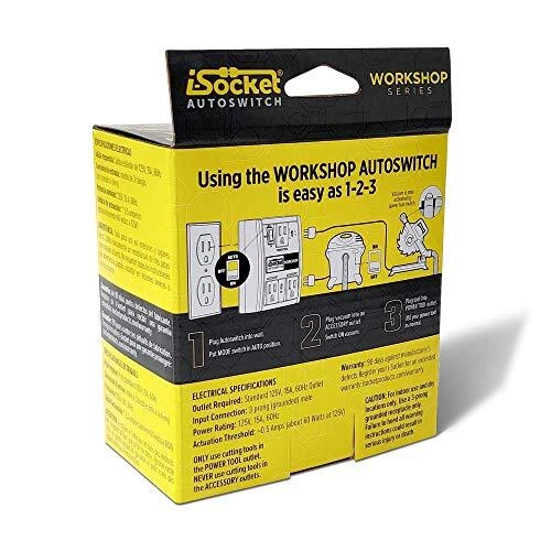 i-Socket Workshop Automated Vacuum Power Switch - Power Tool Activated Sensor and Automatic Shutoff - Workshop Safety Device for Contractors and Woodworkers The i-Socket Workshop automatically synchronizes your saws and other cutting tools to turn on your shop vacuum and other tool accessories. After turning off your power tool, the i-Socket Workshop switch delays turning off the shop vac by 7 seconds to allow the vacuum to complete the dust collection. The i-Socket technology is professional-grade, durable, and safe, UL certified and includes intelligence to control the inrush current, helping to prevent circuit overload. The additional manual Mode switch is a must-have for your dust collector accessories because it allows you to run your vac and other tools independently. Use an i-Socket with anything from your miter saws, table saws to hand held sanders, rotary and oscillating tools. It is designed for a standard 125V wall outlet in a home, shop, or jobsite. The i-Socket Autoswitch Workshop is an intelligent switch that automatically turns on a shop vac, fan, light or pump. It features two accessory outlets, a Mode switch and LED safety indicators. The Mode switch allows the Workshop to function in Auto and Manual Mode for when you want independent control of a vacuum and or an accessory. i-Sockets are UL tested. SHIPPING - We offer FREE shipping on all orders! - We ship within 3 business days of payment, usually sooner - We use a selection of shipping services such as UPS, FedEx, USPS etc - We only ship to the lower 48 states, no APO/FPO addresses or PO Boxes allowed International buyers – please note: Import duties, taxes, and charges aren't included in the item price or postage cost. These charges are the buyer's responsibility. - Please check with your country's customs office to determine what these additional costs will be prior to bidding or buying. - We have confidence in our products, but if you are not fully satisfied please contact us within 30 days of purchase and you will get full refund. * Order Cancellation Policy ** You can return a product for up to 30 days from the date you purchased it. 1. The seller reserves the right to cancel the special case only due to eBay cancellation fee. 2. The decision of seller is the final. 3. The seller will respond to the cancellation request within 2 business days. Please wait for the result of cancellation. 4. In case the cancellation is not completed by some reasons, the buyer can follow the options below to get the refund. 4.1 The buyer can reject the item when it arrives. 4.2 The buyer can send the item back to the seller within 30 days If the buyer receives item (USA Shipment ONLY). The seller will provide the FREE return label to the buyer when the buyer opens " Return Item" case on eBay by using the reason as "Change my mind" ONLY. 5. When buyer has placed the order. The order will be processed and completed by automatic warehouse system within 5 minutes. In case that buyer sends the cancellation request after 5 minutes of placing the order, the request will be rejected. **Sending direct message to cancel the order is not allowed for every case.* Return Policy For the return case - If buyer would like to return the items for refund or replacement, please CONTACT SELLER to receive the free return label from seller. The refund or replacement will be processed with the tracking number of return label which is provided by seller only. The other ways of return which are not approved by seller will not be processed for the refund or replacement. CUSTOMER SERVICE - We try our best to make sure every customer is completely satisfied. - If there's a problem, feel free to message us! - We're happy to help.