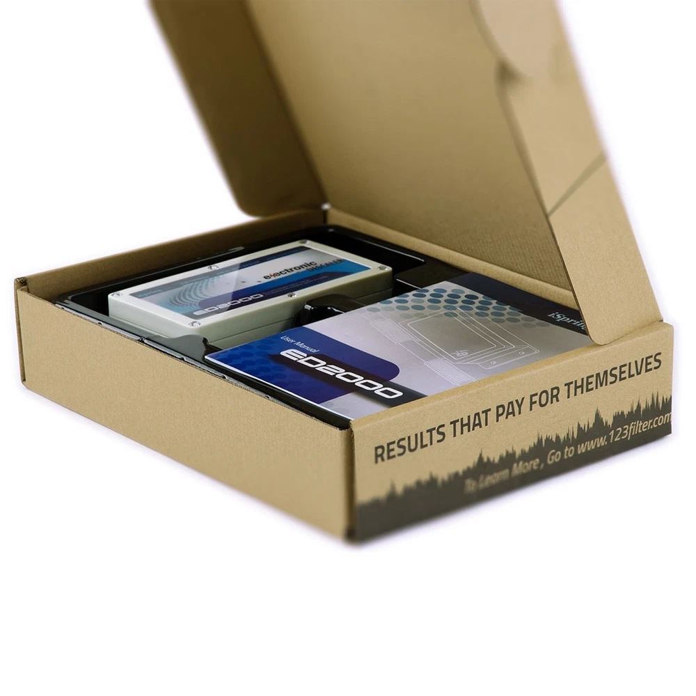 The iSpring ED2000 whole house electronic water descaler is an innovative, computerized water conditioning system that solves hard water problems without the need for chemicals, salt, or filter cartridges. It requires little maintenance as it does not need the constant salt additions or cartridge replacements that traditional water softening systems require. This makes it a healthy and economic alternative to a traditional water softener, and great for those on salt-restricted diets. The ED2000 functions by wrapping two antenna cables around the main water pipe to form a coil, creating a complex, frequency modulated, electronic magnetic waveform. This induces an oscillating electric field into the water, resulting in the agitation of water molecules sufficient enough to trigger the release Free Shipping Over $49.99* Details iSpring Whole House Electronic Descaler Water Conditioner Product Description: The iSpring ED2000 whole house electronic water descaler is an innovative, computerized water conditioning system that solves hard water problems without the need for chemicals, salt, or filter cartridges. It requires little maintenance as it does not need the constant salt additions or cartridge replacements that traditional water softening systems require. This makes it a healthy and economic alternative to a traditional water softener, and great for those on salt-restricted diets. The ED2000 functions by wrapping two antenna cables around the main water pipe to form a coil, creating a complex, frequency modulated, electronic magnetic waveform. This induces an oscillating electric field into the water, resulting in the agitation of water molecules sufficient enough to trigger the release of carbon dioxide and cause the premature precipitation of calcium bicarbonate. This process naturally results in a small increase in solubility, which allows the now unsaturated water to dissolve existing scale deposits and remove them from the water system. Limescale deposits on your fixtures will soften after regular contact with the treated water from the ED2000. This allows for easier cleaning of fixtures without the use of chemicals. Deposits on shower heads, sinks and faucets will easily wipe off. The treated water will also allow soap to lather up more effectively, leaving skin feeling smoother and hair more manageable.Installation is very simple and requires no changes or modifications to your plumbing. Enjoy healthier and better tasting water, as well as brighter, whiter and longer lasting clothes, towels and sheets. The iSpring ED2000 comes with a 1-year money back guarantee and lifetime technical support from iSpring Water Systems in Alpharetta, GA. For any questions or concerns regarding your ED2000, please contact iSpring Water Systems directly. If you are looking for the benefits of a water softener without the cost, maintenance, and plumbing headaches, the ED2000 makes an excellent choice.