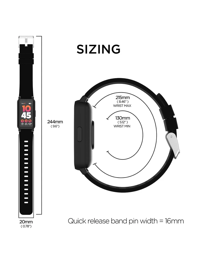 The iTech Active 3 Fitness Tracker is the perfect addition to your active lifestyle. By combining the most popular aspects of the best-selling iTech models with new and improved technology, the iTech Active 3 fitness tracker will not disappoint. It’s a powerful and stylish timepiece that offers optimized performance and an attractive design. Featuring a sleek and modern look, this lightweight device is both comfortable and durable, making it ideal for any active lifestyle. This fitness tracker is a complete health and fitness tracking solution designed to help you achieve your goals and stay energized on your fitness journey. This affordable fitness tracker helps you by monitoring your heart rate, reminding you to hydrate and continuously tracking your steps. You can also use the accompanying app to set fitness goals, monitor your progress and stay on track with your routine. With the app, you can track your sleep pattern. Whether you’re a seasoned gym enthusiast or just starting down the path to fitness, the iTech Active 3 Fitness Tracker is the perfect companion for your journey to wellness. Case: Rectangular plastic Strap: Silicone, 20mm wide Closure: Buckle Dial: LCD display Water-resistance: Yes Multi Sports Mode (123 Modes): Walking, Running, Cycling, Skipping,Badminton, Basketball, Football, Swimming, Climbing, Tennis, Rugby, Golf, Yoga, Fitness, Dancing, Baseball, Elliptical, Indoor Cycling, Free Training, Rowing, Outdoor Running, Skiing, Bowling, Dumbbells, Sit Ups, On Foot, Indoor Walking, Indoor Running, Cricket, Kabaddi Multi-Language: English, French, Spanish, German Clock Feature: Clock; Stopwatch; Auto Set Time; Multiple Time Zones (Can Support) Activity & Fitness: Activity Monitoring; Exercise Time; Calories Burned; REM Sleep Monitoring; Preset Sleep Time (Can Support); Auto Enter/Exit Sleep Mode; Sleep Duration; Depth of Sleep; Static Heart Rate; Dynamic Heart rate; HR Alerts; SpO2; Sedentary Remind; Relaxation Mode; Goal Tracking Smart Features: Notification; Social Media; Phone Call Reminder; Emails Reminder; App Alerts; Read Texts; Missed Call/Message Reminder; Goal Achieved Alert; Weather; Custom Watch Face; Find My Phone; No Disturb Mode; Raise to Wake; Battery Saving; Brightness Level; Screen Timeout Options; OTA Other Features: Find device; Hydration Reminder; Hand Washing Reminder; Flashlight Note: Photo may have been enlarged and/or enhanced for detail Active 3 Unisex Adult Smartwatch Fitness Tracker from iTech