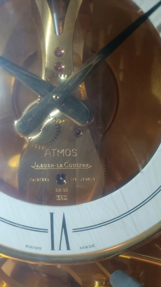 This Jaeger Lecoultre Atmos Clock 540 683333 is a stunning piece that will add a touch of elegance to any room. Crafted from high-quality metal and finished in a beautiful gold color, this master clock is sure to catch the eye of any clock enthusiast. The clock features a unique novelty theme that adds a touch of personality to the overall design. Perfect for collectors and those who appreciate fine timepieces, this clock is a must-have for any clock collection. Whether you're looking to add to your decorative collectibles or simply want to make a statement in your home, this Jaeger Lecoultre Atmos Clock 540 683333 is sure to impress.