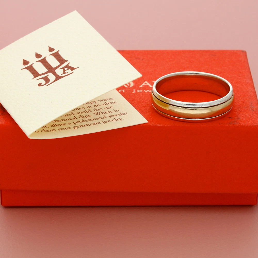 james avery sterling silver & 14k gold mens simplicity wedding ring size 12.5 Pre-loved but in great condition - Weight - 7.3g Ring Size - 12.5 Width - 6mm Item ID - ABK97402190 _gsrx_vers_1649 (GS 9.7.2 (1649))