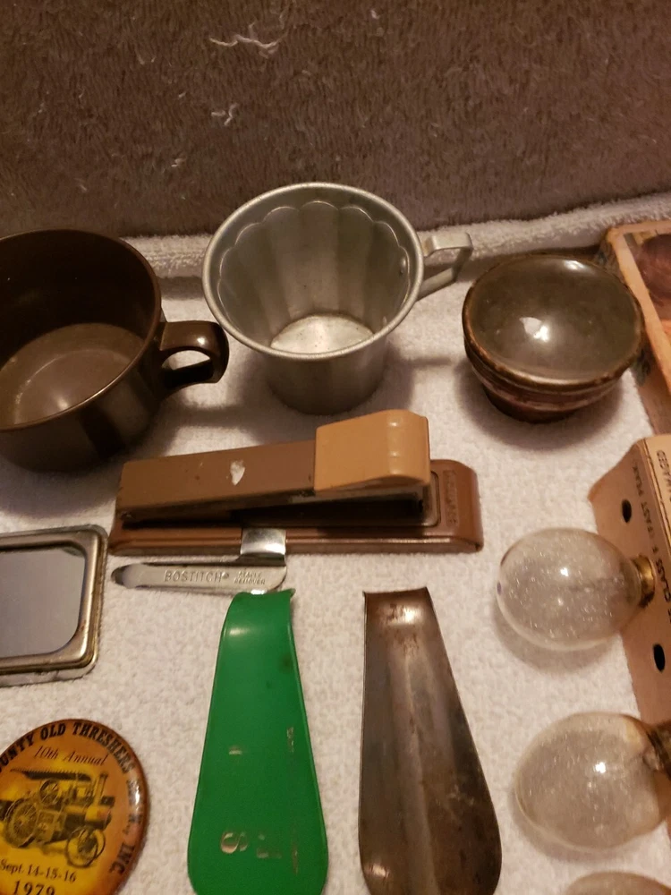 This junk drawer lot includes a variety of vintage collectibles such as button pins, flash bulbs, lenses, and a stapler. These unique items would make a great addition to any collector's collection and are sure to bring back nostalgic memories. The lot falls under the categories of collectibles and wholesale lots, making it an ideal purchase for those who enjoy collecting unique items.