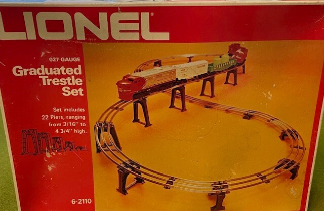 Bundel includes: 14 - 15" Curves, 4 - 10" straight, 1 - 10" straight power track, 2 - 5" straight, 1 right hand manual switch, 1 original 1950,s plastic graduated trestle set.