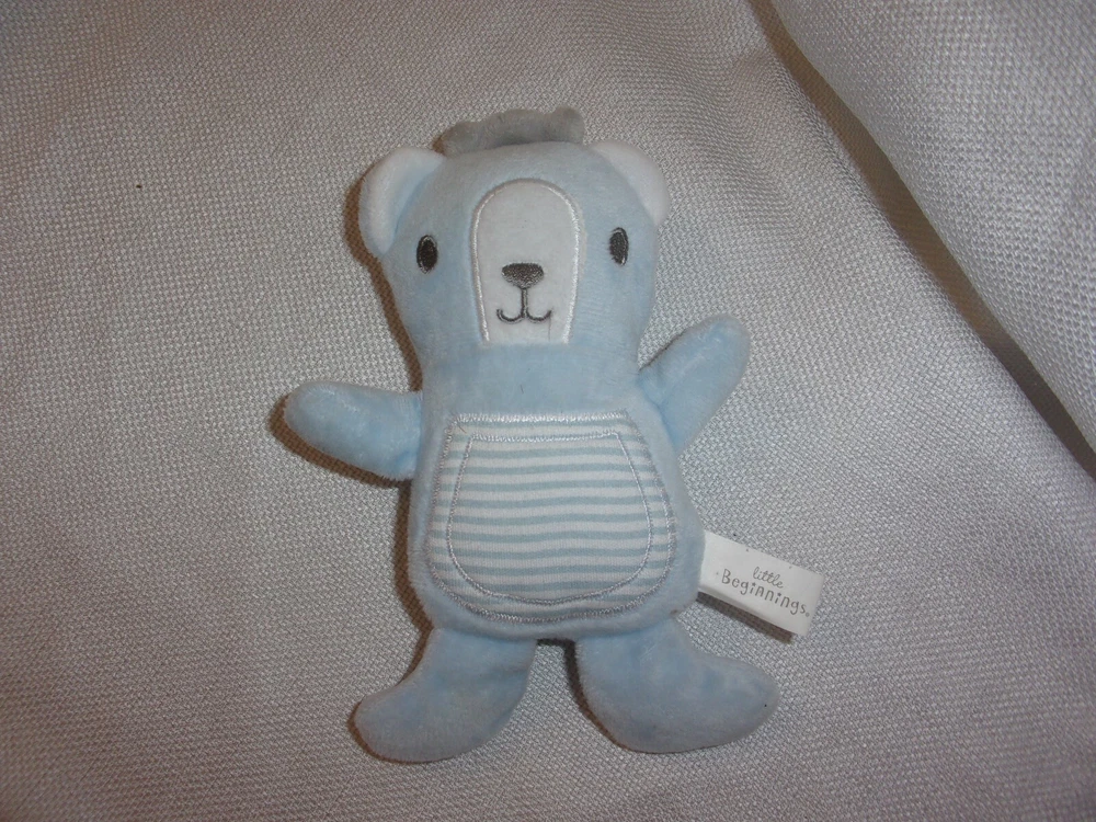 YOU ARE LOOKING good preowned CONDITION : little beginnings PLUSH LOVEY 6" BLUE GRAY STRIPED bear baby stuffed so soft and cute NO RIPS OR TEARS SMOKE AND PET FREE HOME.USA SHIPPING ONLY. PLEASE CONTACT ME THROUGH E-BAY ONLY. SEE MY OTHER ITEMS IN AUCTION. I AM HAPPY TO COMBINE SHIPPING. THANKS FOR LOOKING. PLEASE ASK QUESTIONS. I TRY TO DESCRIBE ACCURATELY AND WANT YOU TO BE HAPPY WITH PURCHASE SO IF ANY PROBLEMS, PLEASE CONTACT ME.