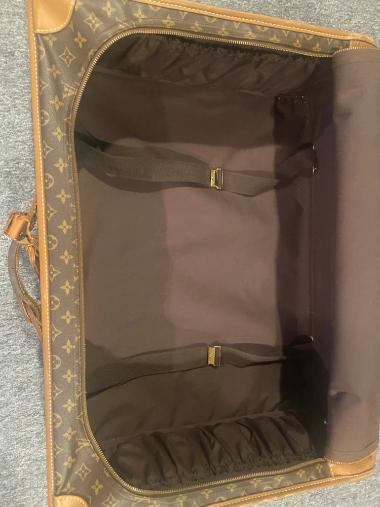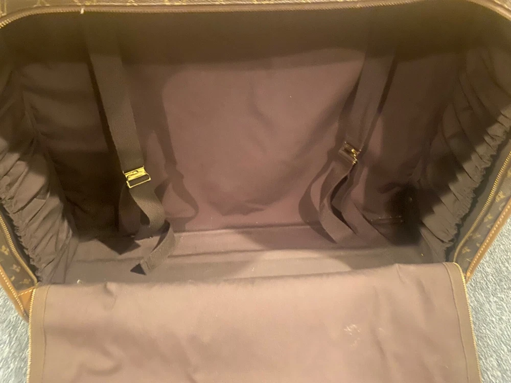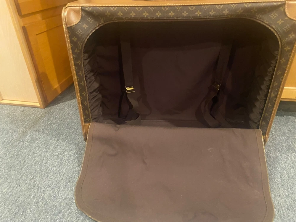 The Louis Vuitton vintage suitcase is a luxurious travel essential designed for women. Made in France with leather material, it features the iconic Louie Vuitton pattern on a soft case style that is upright for convenient packing and transportation. This suitcase embodies the classic elegance and high-quality craftsmanship synonymous with the Louis Vuitton brand, making it a stylish and functional choice for any traveler.