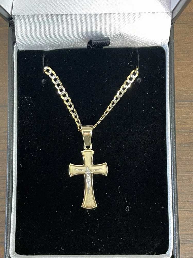 mens 14k gold diamond chain necklace with cross. Shipped with USPS Ground Advantage.