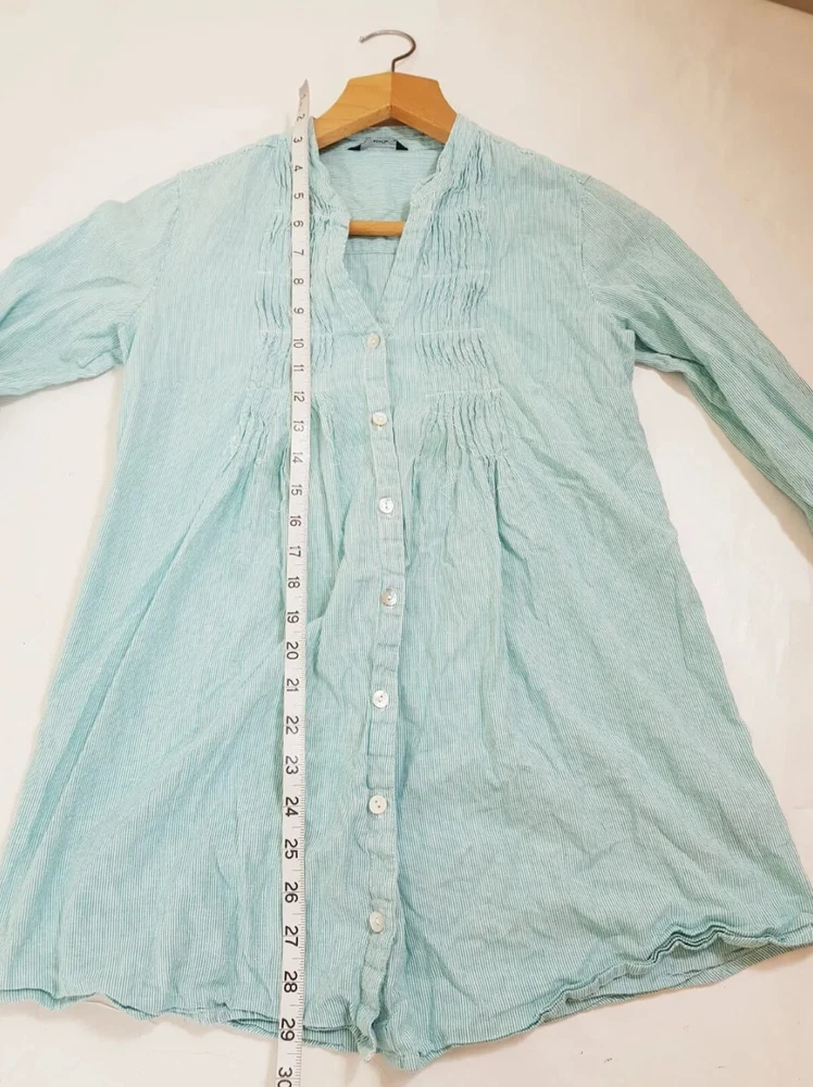 Add a pop of colour to your wardrobe with this M&Co Sandstone green paisley pattern shirt. The long sleeve shirt features a collared neckline with button closure and is made from 100% cotton jersey fabric. It's perfect for any occasion from casual outings to formal events such as weddings or parties. The lightweight shirt is machine washable and has accents of buttons. It comes in a regular fit and size 10, making it a great addition to any women's clothing collection. This limited edition shirt is not only comfortable but also stylish, with its colourful theme and solid pattern design. Made in the United Kingdom, it's perfect for the winter, autumn, and spring seasons. In Good Used Condition Measurements In inch : Please see photos above for all measurements I will ship this item out via Evri 2-3 Day Mail with a tracking number for confirmation I ship items out EVERY DAY so EXPECT a QUICK delivery! Please feel free to ask any questions you may have I answer most questions instantly! PLEASE NOTE THAT ALL OUR ITEMS ARE %100 AUTHENTIC Please Note that all our items are from smoke and pet free Environment. #06/04/23# (B94) PLEASE VISIT MY STORE AND CHECK MY OTHER ITEMS THANK YOU