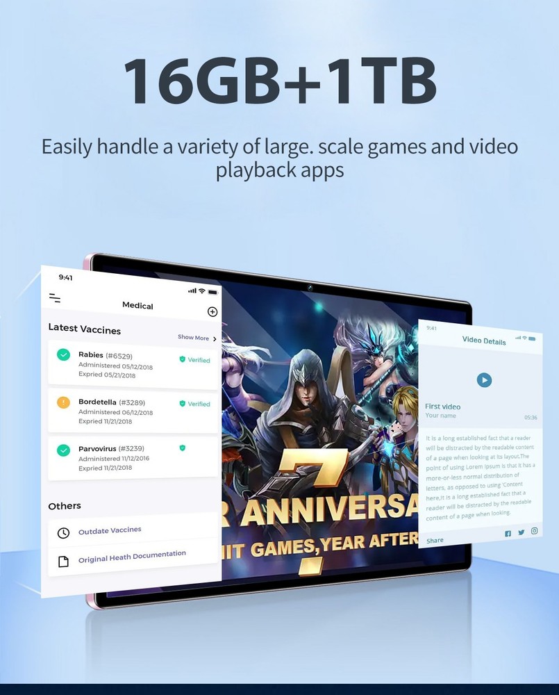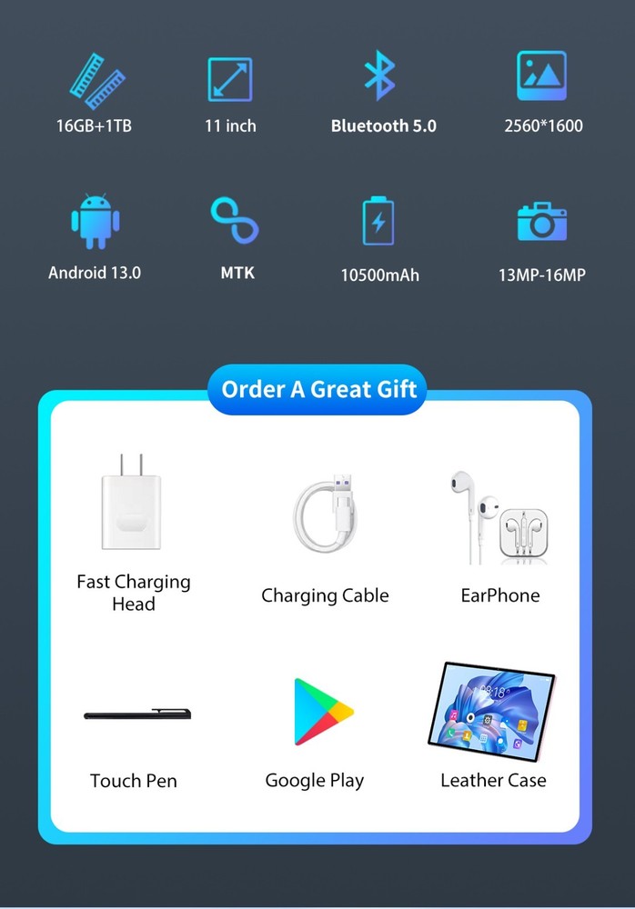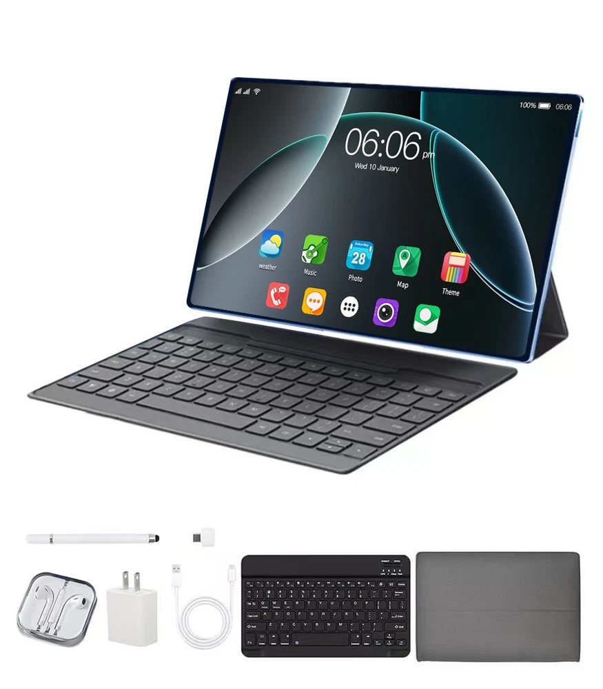Tablet 10.1 inch Ultra Big Android 12 Tablets, 256GB Storage,8GB RAM, 8800 mAh Battery , 10-Core 2.0gHz CPU,2 Speakers, 4G/5G WiFi with Case Bullet Point ★ 10.1 LARGE DISPLAY& 10 CORE CPU: Experience ultimate performance with the Weiboer Android Tablet featuring a robust 10-core CPU, 8 GB RAM, and 256GB internal storage. Expand up to 512 GB with microSD (sold separately). Enjoy seamless multitasking on the fast and responsive tablet. Its 10.1inch 1920x1200 full screen with a wide viewing angle offers high-resolution images, providing a more realistic and powerful visual experience. ★ UPGRADED ANDROID 12 TABLET: 10.1 inch google android tablet is equipped with a new upgraded system "Android 12", providing a more personalized, safe and easy-to-operate system experience. You can install apps like Netflix, TikTok, YouTube, LINE, Yahoo, Twitter from the Google Play Store on your GMS certified tablet. ★ 8800MAH LONG LASTING BATTERY: The 10.1 inch Computer Tablets is equipped with battery up to 8800mAh. Achieve up to 8 hours of video battery life, and use the Type-C port to charge more easily, regardless of positive or negative. With a weight of 996g, it is very convenient to carry it with you whether you are working, studying or going out. ★ MULTIFUNCTIONAL 10.1 INCH TABLET: Equipped with a 13MP + 5MP camera and By combining it with the flash, it is thought that shooting in dark places will be really improved. iMeshbean tablets android Bluetooth 4.1 supports high-fidelity headphones for sound quality enjoyment. Great for work or pleasure, use this tablet for video conferencing, gaming, streaming, or even as an e-reader in your preferred language. ★ 2 IN 1 TABLE WITH KEYBOARD LEATHER CASE: Tablet connect with Keyboard, change 2 in 1 laptop; Tablet case, Screen protector and Touch pen can better use. ★ SEAMLESS CONNECTIVITY: Get fast and stable internet connectivity with 2.4G/4G/5G WiFi that offers better range and speed, undisturbed streaming, gaming or browsing. The sturdy metal frame adds durability to this WiFi Android tablet, making it perfect for everyday use . ★ IDEAL CHOICE FOR GIFT: With exceptional performance, a chic aesthetic, and exquisite packaging, this tablet stands as the ideal gift for occasions like Christmas, Valentine's Day, birthdays etc, Its impressive features ensure a memorable and versatile present for your loved ones. Specification 10.1 inch Tablet Brand BDF Model P14 Shell Metal aluminum alloy shell Color Black Display 10.1 inch Resolution 1920X1200 Keyboard Backlight Bluetooth Keyboard(Support external keyboard) CPU MTK Core 10 core Storage 8GB RAM +256GB ROM Camera Front Camera:500W Rear Camra:1300W Battery 8800mAh Operating system Android 12 Bluetooth BT4.2 Processor Speed 2.0 GHz Microphone 42db 2.2kΩ Speaker Built-in 8Ω 1W TF Card Micro SD Earphone 3.5MM Interface Type Cx1, headphone jack 3.5 mm x1, microSD slot x1 DC power x1 Power adapter 5V 2A Package included 1x14inch Tablet 1xbluetooth keyboard 1xCharger 1xKeyboard Case 1xWireless Mouse 1xTouch pen 1xEarphone 1xEnglish Manual Package List 1x10.1 inch Tablet 1x10inch bluetooth keyboard 1xCharger 1xKeyboard Case 1xTouch pen 1xEarphone 1xEnglish Manual
