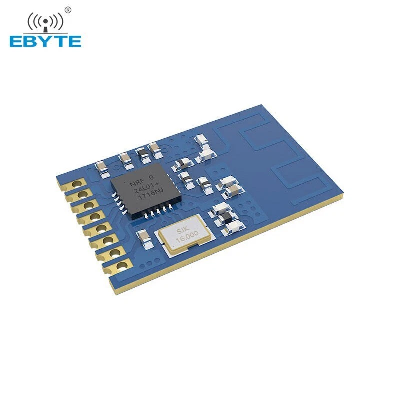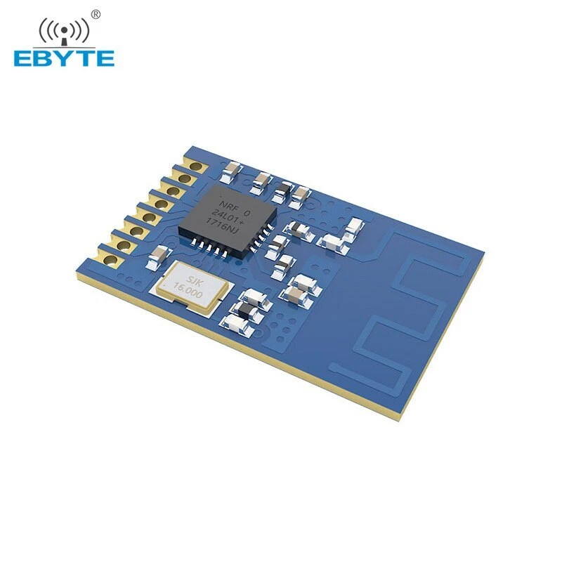 RF Parameter Value Remark Working frequency 2400~2525 MHz Default: 2.4GHz (16MHz oscillator) Transmitting power 0 dBm Max. Power (1mW) Receiving sensitivity -93 dBm Air data rate: 250kbps Air data rate 250k~2Mbps Default: 250kbps Test distance 100m In open and clear air, with maximum power, 5dBi antenna gain, height of 2m, air data rate: 250kbps Hardware Parameter Value Remark Size 12 * 19 mm Without SMA Antenna type PCB Communication interface SPI Package SMD Electronic parameter Min. Typ. Max. Unit Condition Power supply 2.0 3.3 3.6 V Communication level 2.0 3.3 3.6 V Transmitting current 12 13 14 mA 0dBm(1mW) Receiving current 11 12 13 mA Sleep current 0.5 1.0 2.0 μA Operating temperature -40 20 +85 ℃ Operating humidity 10 60 90 % Storage temperature -40 20 +125 ℃