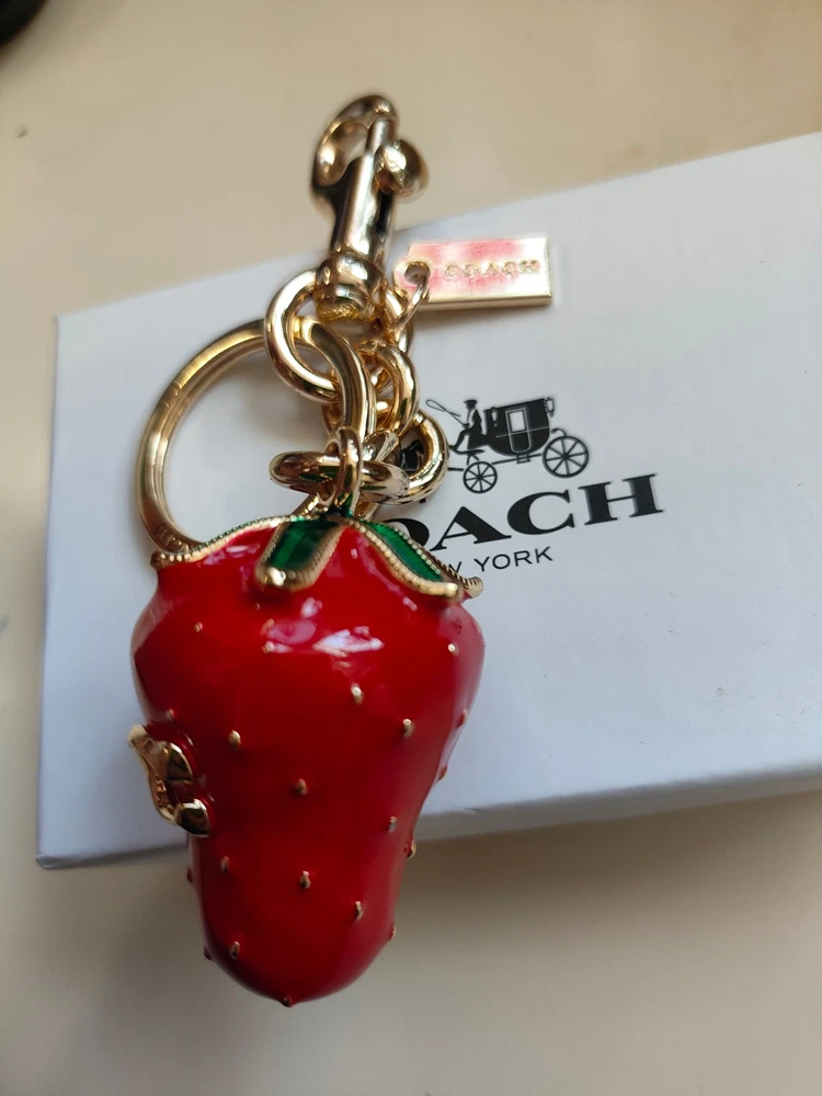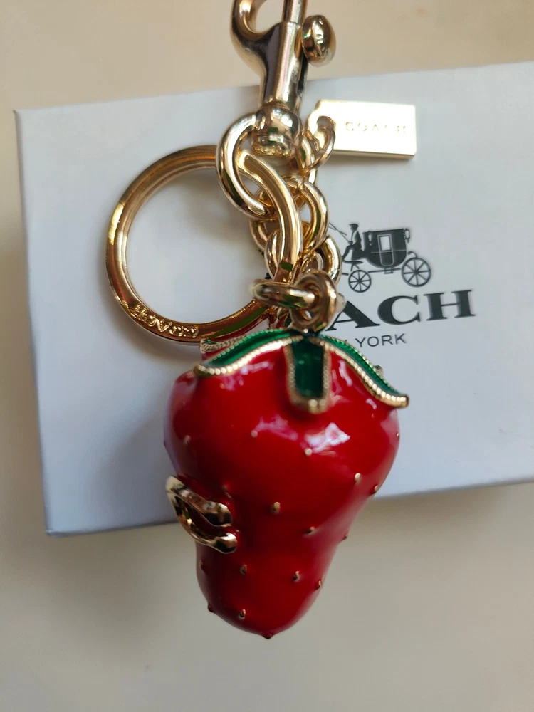 new ™COACH Strawberry KeyChain Bag Charm Resin and Metal