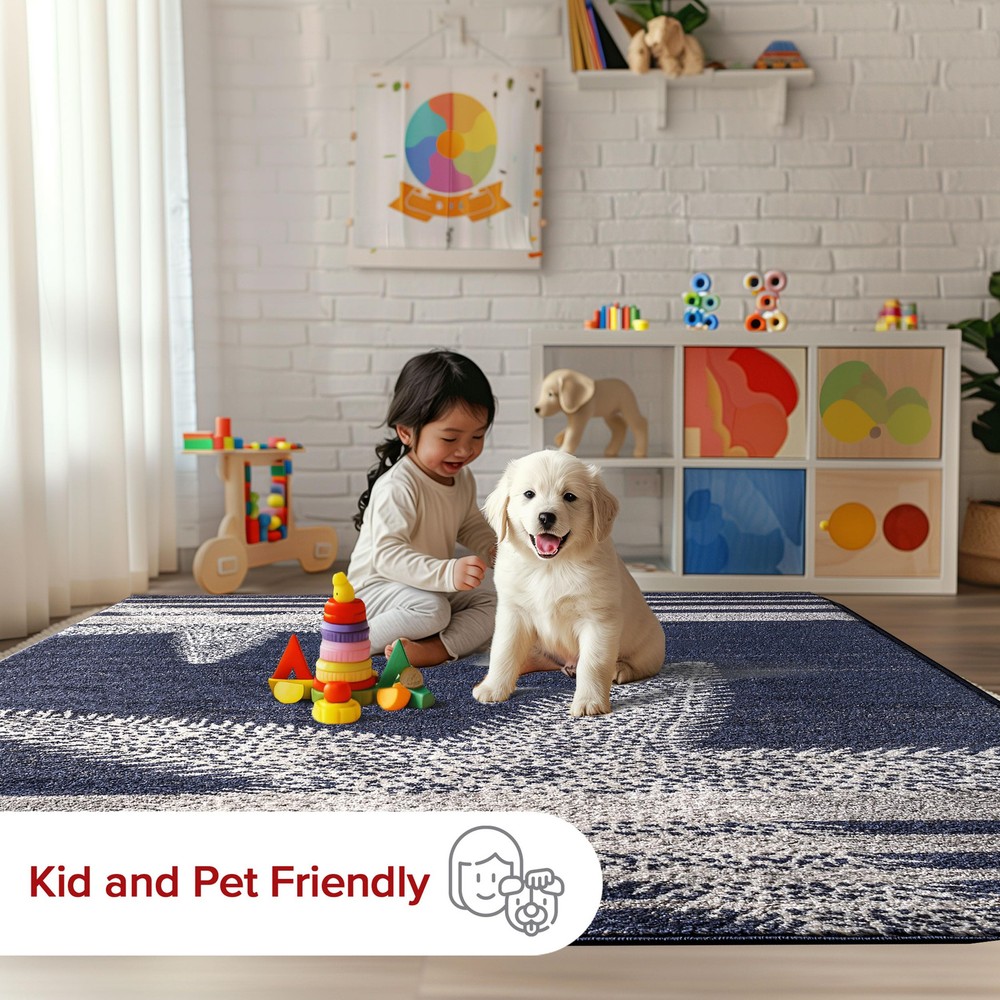 This rug is a game-changer for my living room! The soft texture feels amazing underfoot, and the coastal blue stripes mixed with cute starfish give it such a breezy, relaxed vibe. It’s held up great with my dogs running over it daily—no snags or stains. Super easy to clean, too. Perfect mix of style and durability—totally worth it!