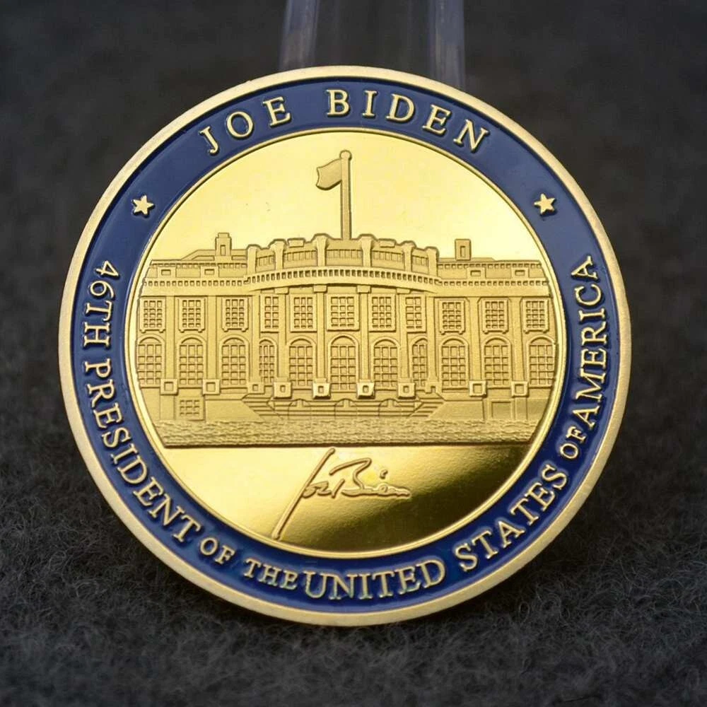 46th US president Joe Biden Commemorative Coin inaugural Challenge Coins Novelty Coin Political Gift Size approx.: 40mm*3mm Material: Metal with Gold Color Plated. Weight: around 40g 46th US President Joseph Robinette Biden - Inauguration. Package: 2 piece coins packed with premium capsule and opp bag