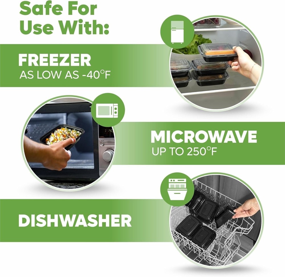 Contenedores De Almacenamiento De Alimentos Para Congelador Y Lavavajillas NUEVO Duraderos y reutilizables: fabricados con plástico de alta calidad y sin BPA, estos recipientes para preparar comidas están diseñados para un uso repetido, lo que ofrece una solución de almacenamiento de alimentos sostenible y rentable. Apto para microondas, lavavajillas y congelador: estos recipientes para preparar alimentos pueden soportar varias temperaturas, lo que los hace adecuados para recalentar en el microondas, limpiar en el lavavajillas y almacenar en el congelador sin comprometer su integridad. Control de porciones: con una capacidad de 12 oz y un solo compartimento, estos recipientes para almacenar sobras con tapa son perfectos para mantener el control de las porciones, lo que lo ayuda a administrar su dieta y planificación de comidas de manera eficiente. Tapas seguras y a prueba de fugas: cada recipiente viene con una tapa hermética para evitar derrames y fugas, lo que garantiza que su comida se mantenga fresca y segura durante el transporte. Amplia cantidad y tamaño conveniente: cada paquete incluye 50 recipientes, cada uno con una capacidad de 12 oz, lo que brinda muchas opciones de almacenamiento para la preparación de comidas y el control de las porciones.
