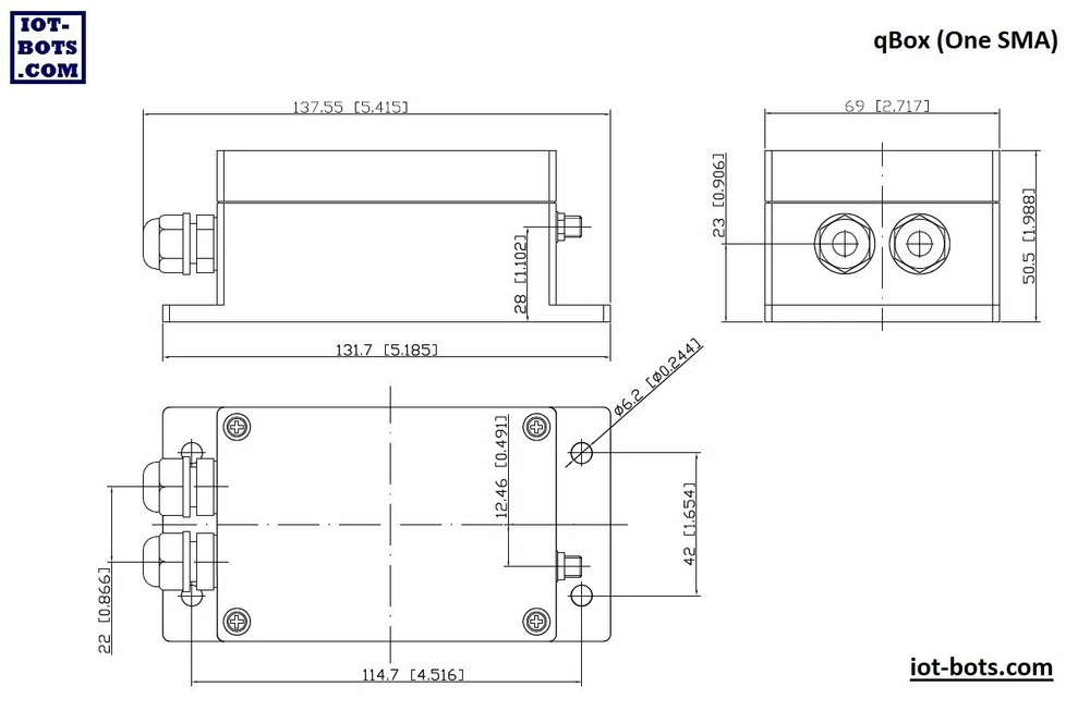 Perfect for any DIY IOT project, qBox Enclosure Plus Kit series is the part of the newest HW platform designed to help hobbyists, makers and all DIYers to build environmental ready IOT solutions. Flanged IP65 waterproof enclosure : Sealed, made of high-quality ABS material suitable for indoor and outdoor DIY IOT projects Incorporated M8 cable glands : Two cable inputs securely allow bringing the power in and connecting sensors and actuators Perfect fit PCB : High quality double sided PCB with 0.1" hole spacing for DIP integrated circuits, modules and main controller board Fixed placement for controller board : Well designed PCB allows to carry variety of MCU boards like Feather Compatible, Arduino MKR Compatible, NodeMCU, etc Built in SMA connector : One SMA Straight Female to IPEX() adapter cable gives external antenna connection to your wireless board Each qBox Enclosure Plus Kit consists of durable waterproof IP65 enclosure with installed PG7 glands, double sided PCB with dedicated placements for IOT controller and connectors, one integrated SMA to adapter cable, connectors set and Arduino UNO board fasteners kit. External DC voltage from power adapter or solar system could be brought by cable through the one gland inner and another gland gives opportunity to connect external sensors or actuators. One LTE / WiFi / LoRa / etc. external antenna could be connected to wireless board connector via SMA to IPEX () adapter cable glued into enclosure wall. Two M3 self tapping screws securely attach the PCB to the enclosure. Enclosure has enough room to keep with or without stacking header one controller board like Feather Compatible or Arduino MKR Compatible or another IOT board, power supply, OLED display and sensor modules using plain grid proto holes. Up to four pluggable 3,5mm terminal blocks, one Grove and several DIP 0.1" I2C and SPI interface connectors could be populated. Four holes and fasteners kit allow to mount Arduino Uno compatible board at the top of PCB. Transparent lid lets see electronics, LEDs and display and is able to hold LiPol battery to be applied to the internal surface. Using qBox Enclosure Plus Kit the variety of IOT DIY projects could be done, like LoRa-based soil moisture monitoring project, NB-IOT bee hive monitoring system, GSM GPS tracking solution and many others. What's included: - IP65 enclosure with two PG7 glands installed and one SMA cable glued; - High quality double sided PCB mounted with two M3 self tapping screws; - Arduino UNO board fasteners kit; - Connectors set (one 1x12 pin DIP 0.1", one 1x16 pin DIP 0.1", two 1x14 pin DIP 0.1", four sets of 3.5 mm 2 pins terminal blocks (socket and plug), one Grove 2mm DIP). More info: