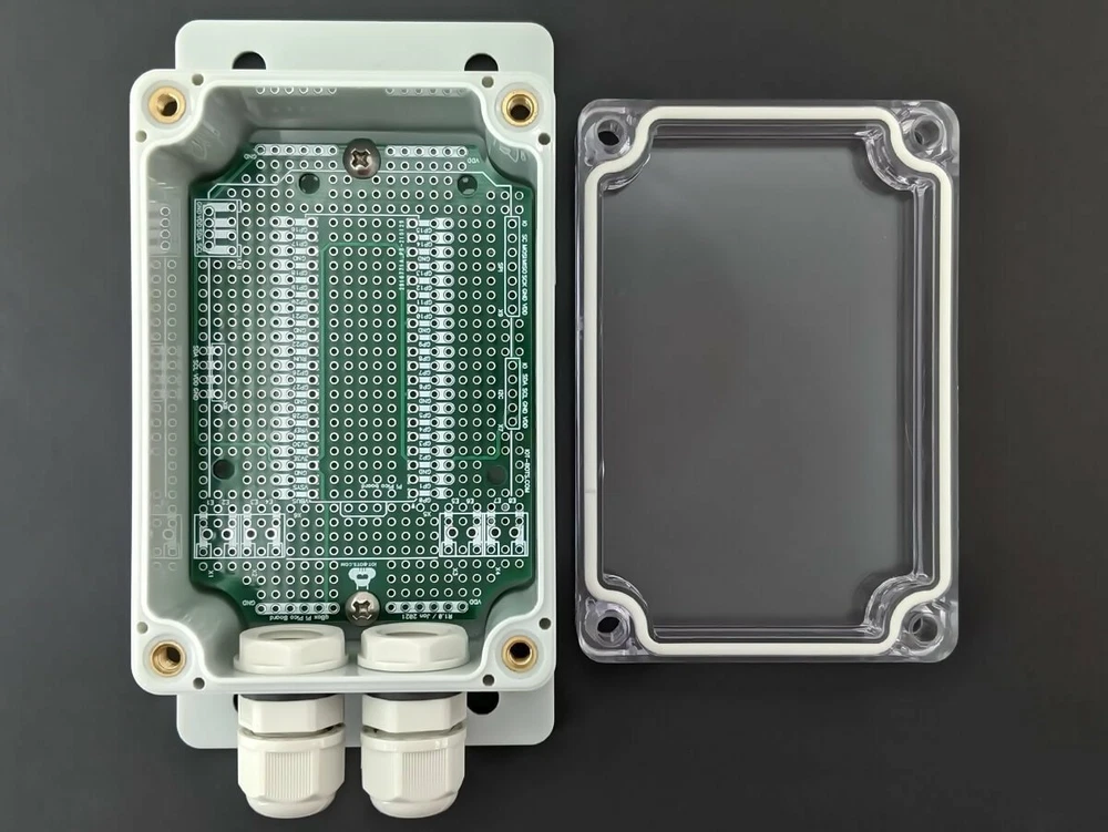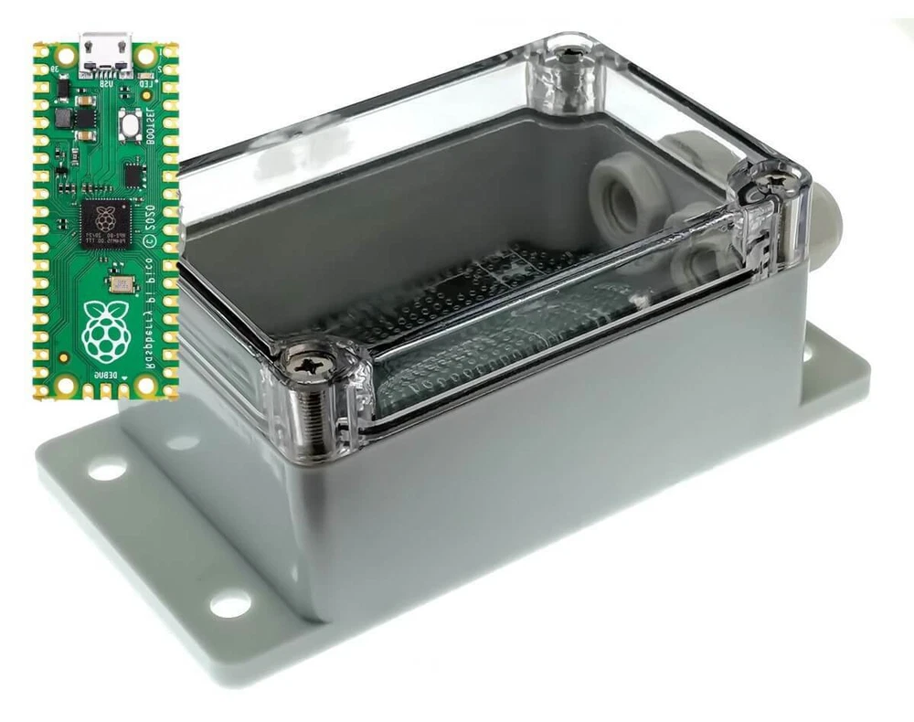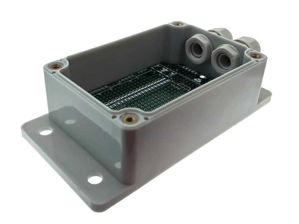 Perfect for any Pi Pico DIY project, qBox Pi Pico DIY IOT Enclosure Kit is the part of the newest HW platform designed to help hobbyists, makers and all DIYers to build environmental ready IOT solutions. Flanged IP65 waterproof enclosure : Sealed, made of high-quality ABS material suitable for indoor and outdoor DIY IOT projects Incorporated PG-7 cable glands : 2 cable inputs securely allow bringing the power in and connecting sensors and actuators Perfect fit PCB : High quality double sided PCB with 0.1" hole spacing for DIP integrated circuits, modules and Pi Pico controller board Fixed placement for controller board : Well designed PCB allows to carry Pi Pico controller board Dedicated Connectors positions : Terminal block, Grove and 0.1" DIP power and interface Pi Pico board connectors could be easily soldered onto the PCB Each qBox Pi Pico DIY IOT Enclosure Kit consists of durable waterproof IP65 enclosure with installed PG7 glands, double sided PCB with placements for Raspberry Pi Pico IOT board and connectors set. External DC voltage from power adapter or solar system could be brought by cable through the one gland inner and another gland gives opportunity to connect external sensors or actuators. Two M3 self tapping screws securely attach the PCB to the enclosure. Enclosure has enough room to keep with or without stacking header one controller board like Pi Pico or another IOT board, power supply (DC/DC), OLED display and sensor modules using plain grid proto holes. Up to four pluggable 3,5mm terminal blocks, one Grove and several DIP 0.1" I2C and interface connectors could be populated. Four holes allow to mount Arduino Uno compatible board at the top of PCB. Transparent lid lets see electronics, LEDs and display and is able to hold LiPol battery to be applied to the internal surface. Using qBox Pi Pico DIY IOT Enclosure Kit the variety of Pi Pico IOT DIY and POC projects could be done, like LoRa-based soil moisture monitoring project, home WiFi garage door opener, NB-IOT bee hive monitoring system, GSM GPS asset tracking solution and many others. What's included: - IP65 enclosure with two PG7 glands installed; - High quality double sided PCB mounted with two M3 self tapping screws; - Pi Pico connectors set (two 1x20 DIP 0.1" female pin headers, two 1x20 DIP 0.1" male pin headers , one 1x3 DIP 0.1" male pin header , four sets of 3.5 mm 2 pins terminal blocks (socket and plug), one Grove 2mm DIP). More info: