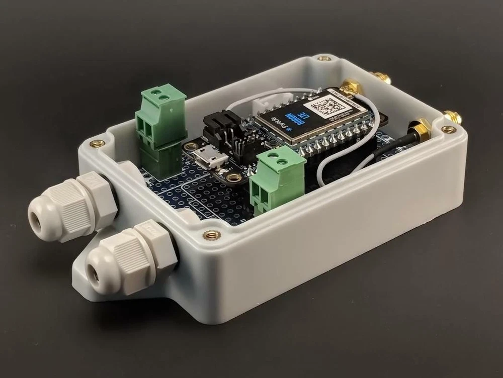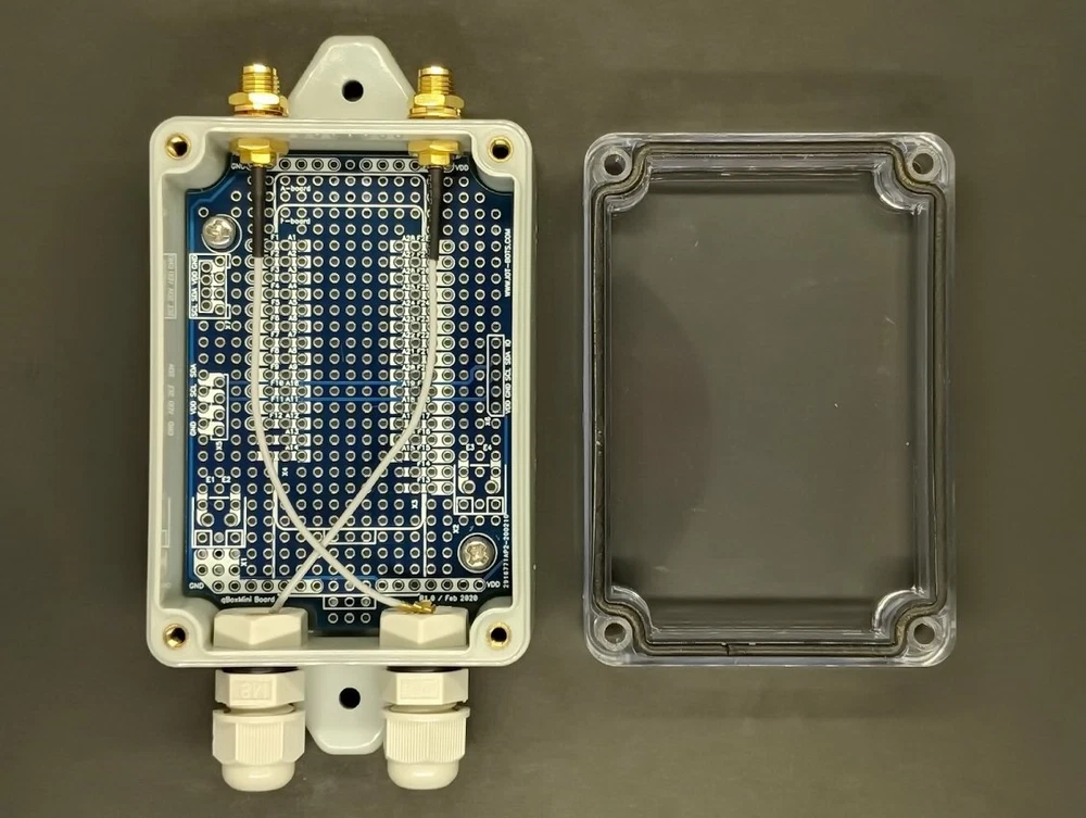 Perfect for any DIY IOT project, qBoxMini Enclosure Kit series is the part of the newest HW platform designed to help hobbyists, makers and all DIYers to build environmental ready IOT solutions: Flanged IP65 waterproof enclosure : Sealed, made of high-quality ABS material suitable for indoor and outdoor DIY IOT projects Incorporated M8 cable glands : Two cable inputs securely allow bringing the power in and connecting sensors and actuators Perfect fit PCB : High quality double sided PCB with 0.1" hole spacing for DIP integrated circuits, modules and main controller board Fixed placement for controller board : Well designed PCB allows to carry variety of MCU boards like Feather Compatible, Arduino MKR Compatible, NodeMCU, etc Two built in SMA connectors : Two SMA Straight Female to IPEX() adapter cables give external antennas connections to your wireless board Each qBoxMini kit consists of durable waterproof IP65 enclosure with installed M8 glands, double sided PCB with dedicated placements for IOT controller and connectors and integrated SMA to adapter cable (up to two, depending on kit model). External DC voltage from power adapter or solar system could be brought by cable through the one gland inner and another gland gives opportunity to connect external sensors or actuators. Up to two GSM / LTE / WiFi / LoRa / etc. external antennas could be connected to wireless board PCB connector via SMA to IPEX () adapter cables glued into enclosure wall. Two M3 self tapping screws securely attach the PCB to the enclosure. Same time board could be easily removed. Enclosure has enough room to keep with or without stacking header one IOT controller board like Feather Compatible (AFC) or Arduino MKR Compatible (AMC) or another IOT board, power supply (DC/DC), OLED display and sensor modules using plain grid proto holes. Up to two pluggable 3,5mm terminal blocks, one Grove and several DIP 0.1" I2C interface connectors could be populated. Transparent lid lets see internal parts, electronics, LEDs and even display and is able to hold LiPol battery to be applied to the internal surface. Using qBoxMini kit the variety of IOT DIY and POC projects could be done, like LoRa-based soil moisture monitoring project, home WiFi garage door opener, NB-IOT bee hive monitoring system, GSM GPS asset tracking solution, etc. What's included: - IP65 waterproof enclosure with two M8 glands installed and two SMA adapter cables glued; - High quality double sided PCB mounted with two M3 self tapping screws (No connectors included). More info: