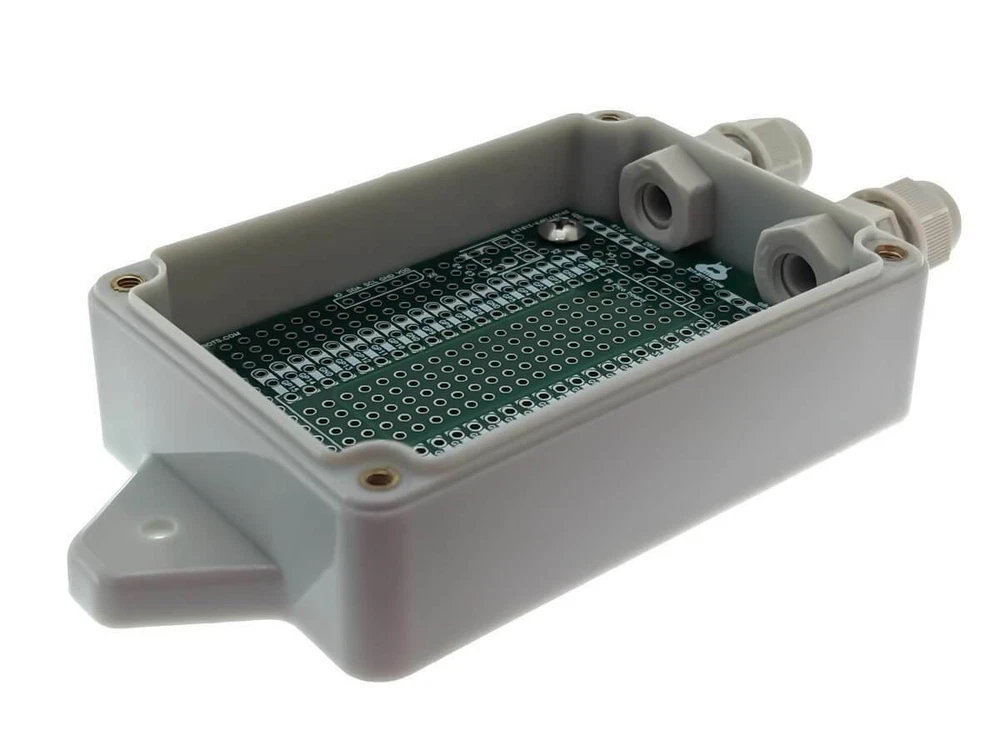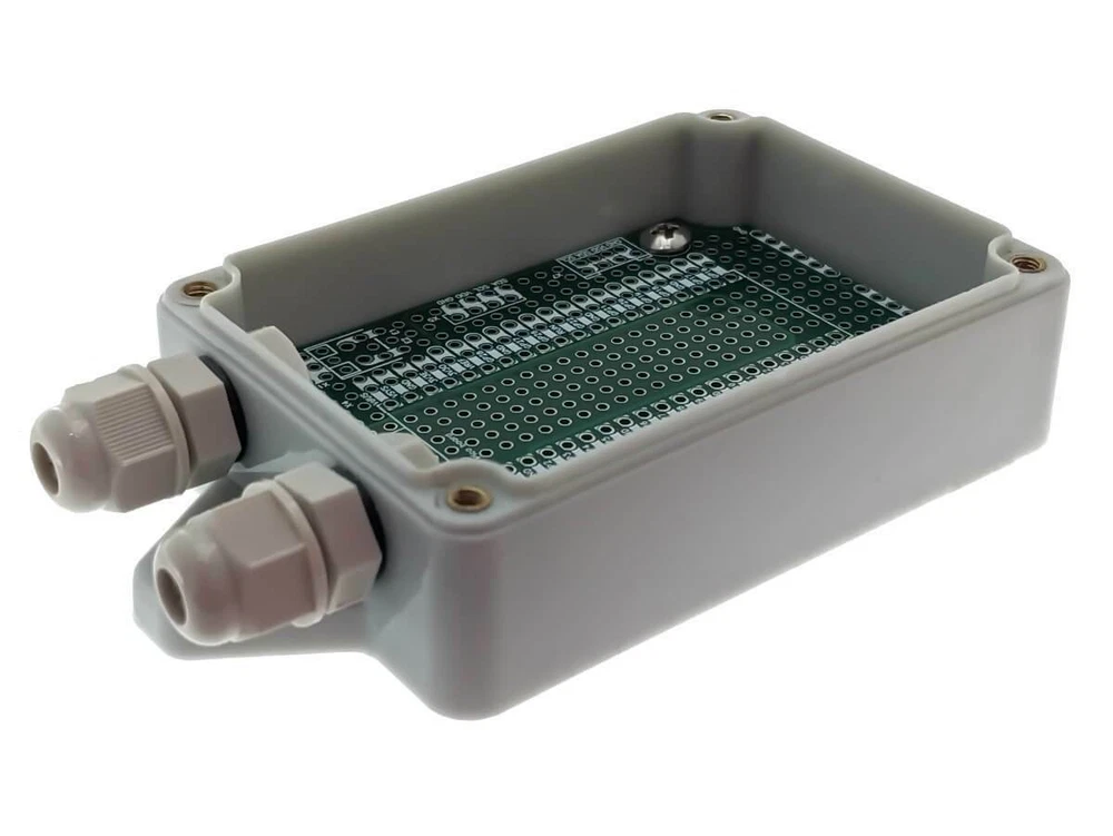 Perfect for any DIY project, qBoxMini Pi Pico DIY IOT Enclosure Kit is the part of the newest HW platform designed to help hobbyists, makers and all DIYers to build environmental ready IOT solutions. Flanged IP65 waterproof enclosure : Sealed, made of high-quality ABS material suitable for indoor and outdoor DIY IOT projects Incorporated M8 cable glands : Two cable inputs securely allow bringing the power in and connecting sensors and actuators Perfect fit PCB : High quality double sided PCB with 0.1" hole spacing for DIP integrated circuits, modules and Pi Pico controller board Fixed placement for controller board : Well designed PCB allows to carry Pi Pico controller board Dedicated connectors positions : Terminal block, Grove and 0.1" DIP power and interface Pi Pico board connectors could be easily soldered onto the PCB Each qBoxMini Pi Pico DIY IOT Enclosure Kit consists of durable waterproof IP65 enclosure with installed M8 glands, double sided PCB with placements for Raspberry Pi Pico IOT board and connectors set . External DC voltage from power adapter or solar system could be brought by cable through the one gland inner and another gland gives opportunity to connect external sensors or actuators. Two M3 self tapping screws securely attach the PCB to the enclosure. Same time board could be easily removed. Enclosure has enough room to keep with or without stacking header one Raspberry Pi Pico IOT controller board or another IOT board, power supply (DC/DC), OLED display and sensor modules using plain grid proto holes. Up to two pluggable 3,5mm terminal blocks, one Grove and several DIP 0.1" I2C interface connectors could be populated. Transparent lid lets see internal parts, electronics, LEDs and even display and is able to hold LiPol battery to be applied to the internal surface. Using qBoxMini Pi Pico DIY IOT Enclosure Kit the variety of Pi Pico IOT DIY and POC projects could be done, like LoRa-based soil moisture monitoring project, home WiFi garage door opener, NB-IOT bee hive monitoring system, GSM GPS tracking solution , etc. What's included: - IP65 waterproof enclosure with two M8 glands installed; - High quality double sided PCB mounted; - Pi Pico connectors set (two 1x20 DIP 0.1" female pin headers, two 1x20 DIP 0.1" male pin headers , one 1x3 DIP 0.1" male pin header , two sets of 3.5 mm 2 pins terminal blocks (socket and plug), one Grove 2mm DIP). More info: