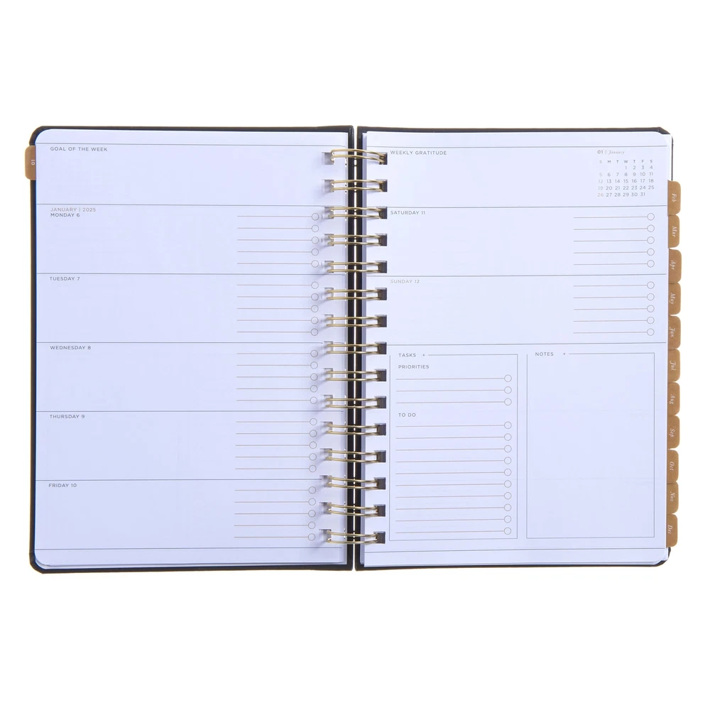russell+hazel 2025 Vegan Leather Black Weekly Planner, 12 Month Calendar To organize a beautiful life, start with a beautiful planner. Bring your plans to your life with our 2025 Blush Vegan Leather Weekly Planner. Crafted with blush vegan leather and adorned with sophisticated gold foil details, this planner exudes a sense of modern luxury. It will inspire you all year long. It includes a yearly overview with monthly holidays to note for an easy-to-view snapshot of the year ahead. From January 2025 to December 2025, with an additional three bonus months, this planner offers an extended planning horizon to keep you ahead of the game. Each monthly spread provides ample space for goal setting, reminders, and important dates. With a clean, intuitive layout, you can easily track habits, set reminders, and plan out your month with generosity. For an extra level of coordination, utilize the 162 included foil stickers to note birthdays, anniversaries and events. Keep any extra materials and documents together in the included double-sided pocket. • The world of russell+hazel lies at the intersection of color, function and light-heartedness. We have an instantly recognizable style language, developed through colors and patterns that capture the essence of who we are and what we stand for. Our philosophy is that good design is not over-design or design for design’s sake, rather pleasing design with loads of functionality. While fresh in spirit, the products represent a constant and complete dedication to quality. Focus on what matters; This planner features space to keep track of your habits, tasks, notes and previous or next month overviews, making it easy to see your progress at a glance Fashion meets function; As beautiful as it is practical, crafted with a blush vegan leather and adorned with sophisticated gold foil details, this planner exudes a sense of modern luxury Focus on what matters; This planner features space to keep track of your habits, tasks, notes and previous or next month overviews, making it easy to see your progress at a glance Set the agenda with 12 monthly spreads (January 25 – December 2025), plus an additional three bonus months Sized to fit your needs; Carry this 5.875” by 8.25” planner with you and easily jot down your plans, thoughts and notes while you’re on the go Shipping from the USA All of our products are shipped from the USA, ensuring quick delivery to your destination. Payment We offer the following payment methods: PayPal, credit card, bank transfer, and eBay's secure payment system. Free Shipping & Free Returns Shipping within the USA is FREE. Additionally, any return is absolutely free for you. Risk-Free Purchase You have the option to return an item within 30 days without any justification. We cover the return shipping costs! Fast Shipping We ship immediately upon receipt of payment. Generally, the package is delivered within 2-3 days in the USA. If it takes longer, we will contact you. Quality and Costs Made in Europe, USA, China No customs fees or additional charges Total satisfaction guarantee Invoice with declared VAT available upon request in .pdf format Feedback Your feedback is very important to us. After you pay for your purchase, you will automatically receive positive feedback from us.