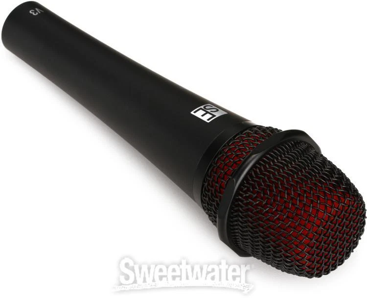 A New Contender from the sE V Series sE Electronics made waves last year with its V7 stage microphone. From the same family comes the more affordable sE Electronics V3 microphone for voice and instruments. The V3 shares the V7's all-metal design to survive the rigors of the road, roll-preventing bevel, and internal shockmount and windscreen to keep stage noise to a minimum. But unique to the sE Electronics V3 are its open-sounding dynamic polar pattern — better suited to guitar cabs, for instance — specialized copper voice coil, and finely tuned frequency response to accurately capture any source onstage including lead and backing vocals, guitars, drums, horns, and more.Not a fan of the red screen? The sE V3 also includes a black screen for traditionalists.Integrated shockmount and internal windscreen ensure top-notch onstage performance When you take the stage with the sE Electronics V3, you don't have to worry about Sweetwater is an Authorized sE Electronics Dealer Genuine New Item Sweetwater's 2-year warranty sE Electronics V3 Cardioid Dynamic Vocal Microphone Handheld Dynamic Microphone with Cardioid Polar Pattern and 50Hz-16kHz Frequency Range A New Contender from the sE V Series sE Electronics made waves last year with its V7 stage microphone. From the same family comes the more affordable sE Electronics V3 microphone for voice and instruments. The V3 shares the V7's all-metal design to survive the rigors of the road, roll-preventing bevel, and internal shockmount and windscreen to keep stage noise to a minimum. But unique to the sE Electronics V3 are its open-sounding dynamic polar pattern — better suited to guitar cabs, for instance — specialized copper voice coil, and finely tuned frequency response to accurately capture any source onstage including lead and backing vocals, guitars, drums, horns, and more. Not a fan of the red screen? The sE V3 also includes a black screen for traditionalists. Integrated shockmount and internal windscreen ensure top-notch onstage performance When you take the stage with the sE Electronics V3, you don't have to worry about handling noise. An integrated shockmount decouples the V3's capsule, effectively eliminating rumble and other distracting sounds. An internal windscreen reduces unwanted wind noise and plosives. Both red and black windscreens are included, so you can choose whichever one suits your personal style. Heavy-duty metal construction and beveled spring steel grille Built from durable zinc alloy, the road-ready sE Electronics V3 can withstand serious punishment. Its spring steel mesh grille is dent- and corrosion-proof. And courtesy of the grille's beveled edge, this microphone won't roll around when you set it down. Rest assured, you'll be using the V3 for years to come, thanks to its high-quality components, including a gold-plated XLR connector. sE Electronics V3 Dynamic Microphone Features: Cardioid pickup pattern reproduces stage vocals and instruments naturally Suits lead vocals, guitar cabs, horns, drums, and choirs Specialized copper voice coil with neodymium magnet All-metal design (no plastic parts) for prolonged life on the road Beveled grille keeps the mic from rolling around when you set it down Integrated shockmount eliminates rumble and handling noise Internal windscreen prevents wind noise and plosives from ruining your performance Both red and black windscreens are included to suit your style Gold-plated XLR connector resists corrosion 50Hz–16kHz frequency range Includes a mic clip, thread adapter, and carry pouch Specification Detail Microphone Type Dynamic Polar Pattern Cardioid Frequency Range 50Hz-16kHz Output Impedance 600 ohms Sensitivity 2.5 mV/Pa (-52 dB) Color Black Connector XLR Weight 10.4 oz. Included Accessories Mic clip, thread adapter RETURN INFORMATION We want you to be completely happy with your purchase from Sweetwater. If you are not satisfied with your product, you may return it for a refund of the purchase price within 30 days. If your purchase was eligible for Free Shipping, the shipping cost will be deducted from your credit or refund. Returns must be in the complete and original packaging with all accessories and complete documentation (Owner's Manual, warranty card, quick start guides, etc.), show no signs of wear or use, and include a Return Authorization number or be subject to a restocking fee.