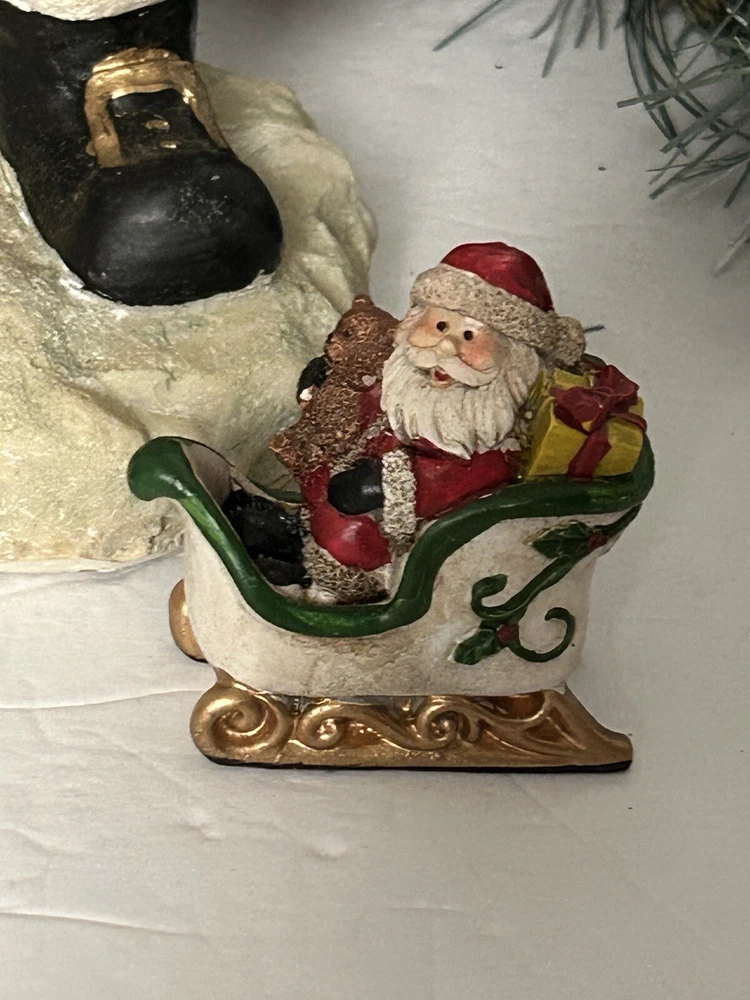 Lot includes large Santa, Santa jar, Santa magnet and adorable small Santa in a sleigh. Good condition