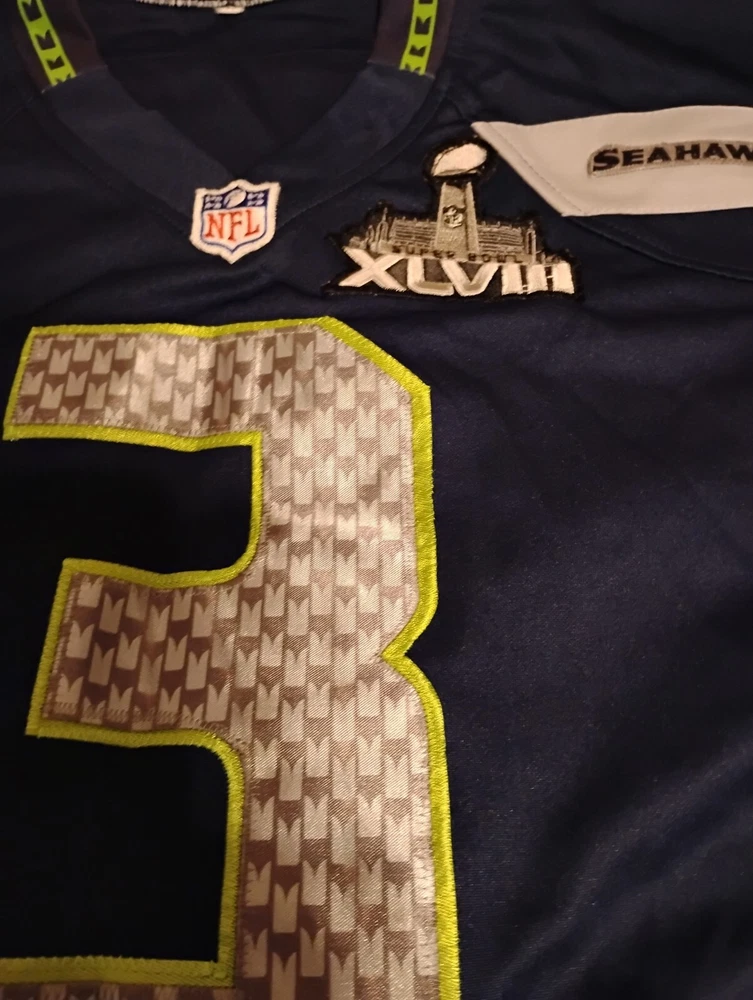 Show your support for the Seattle Seahawks with this Super Bowl jersey. Perfect for any fan of the National Football League (NFL) and football, this jersey is a must-have for any collector. Represent your team with pride and wear this jersey during the Super Bowl or any other special occasion. The size of this jersey is medium and it is made of high-quality materials to ensure durability and comfort. It features the team's colors and logo, making it a great addition to any fan's collection. Get this jersey now and show your love for the Seattle Seahawks!
