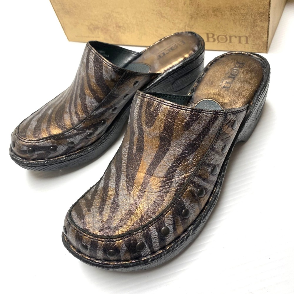 size 7 Born Womens Marley Leather Studded Mules Clogs brown copper zebra Slip-on comfort shoes excellent used condition. come in their original box. born, born clogs, born shoes, born mules, slip on shoes, size 7, born marley, studded, studded shoes, zebra print, zebra shoes, zebra print clogs, zebra clogs, zebra print shoes, size 7 born, born size 7, womens size 7