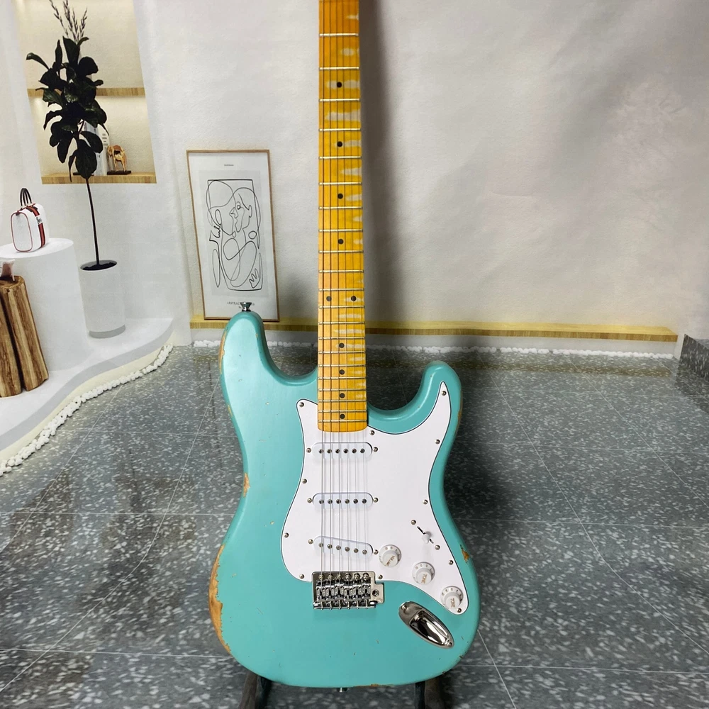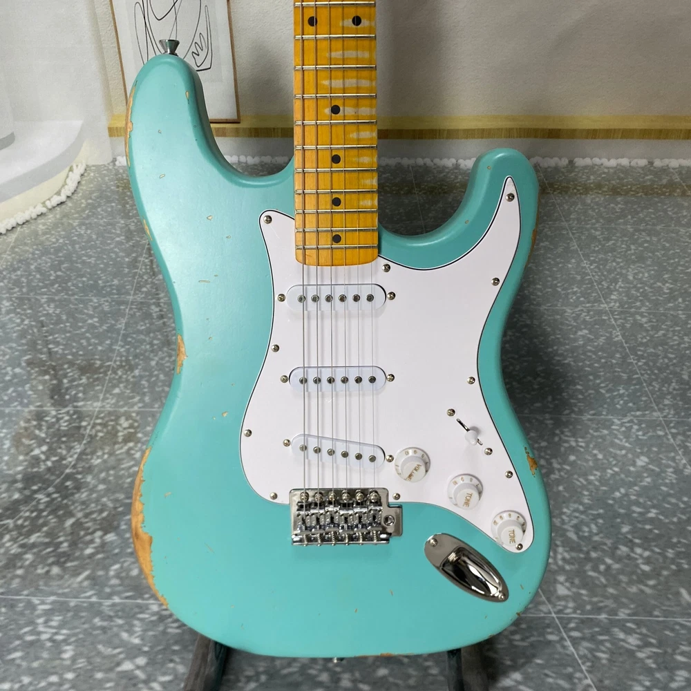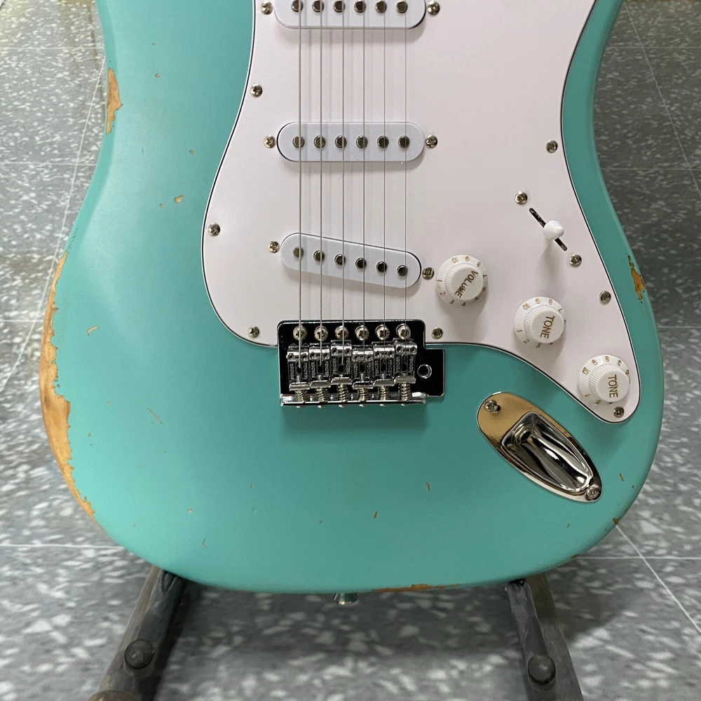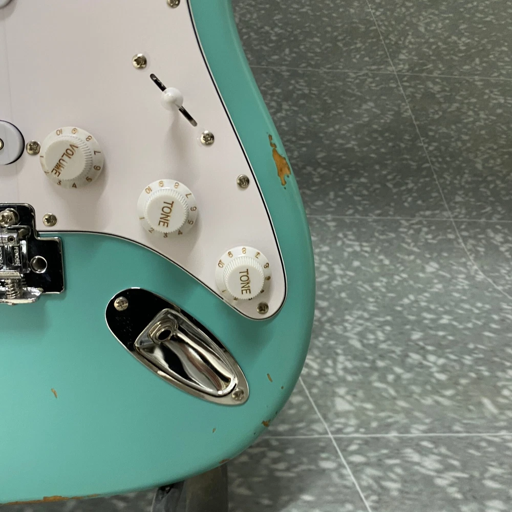 st electric guitar Chrome plated hardware green body Vintage aging US warehouse