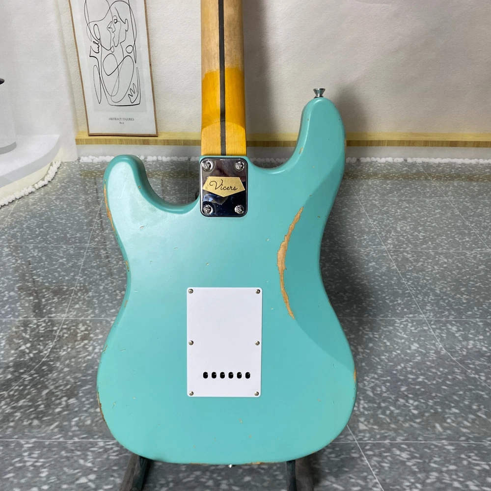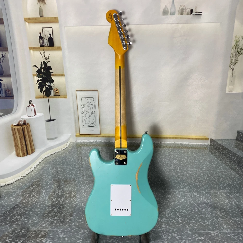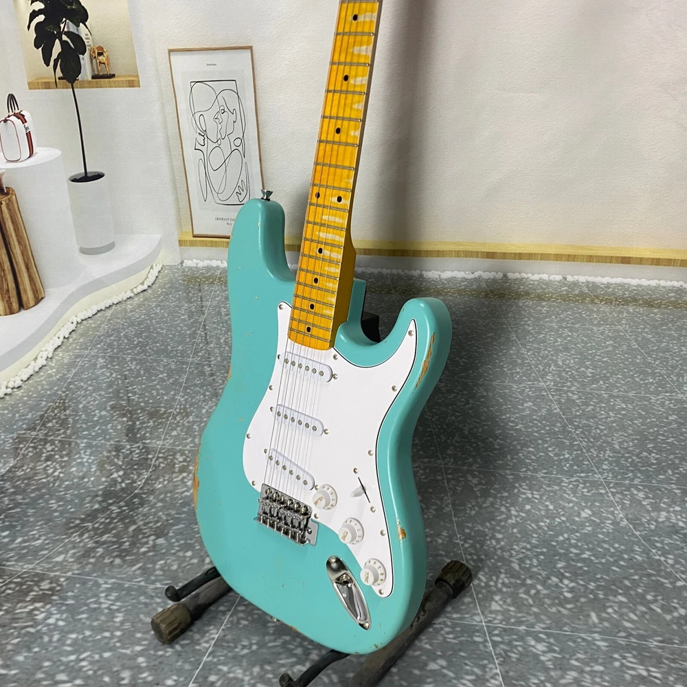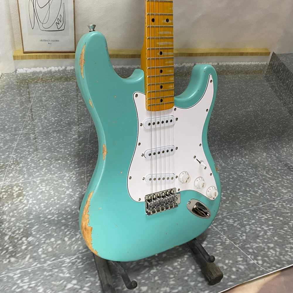 st electric guitar Chrome plated hardware green body Vintage aging US warehouse