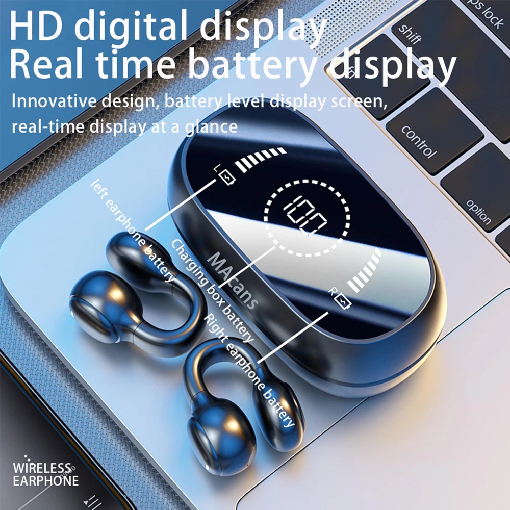 Brand Model Name M47 Color Black,White,Yellow Form Factor Open Ear Connectivity Technology Wireless 【Ear Clip Air Conduction Headphones】The ear clip open design earbuds adopt an "open design" that allows you to enjoy high-quality music or other sounds while hearing ambient sounds around you; suitable for outdoor runners (to hear approaching vehicles or pedestrians) 【LED Power Display and 40H Playback】Dual digital specular surface LED power display outside of the case is to show the power level for charging case and earbuds. When you put earbuds into the case, then earbuds will start to be charged. It can be fully charged once, and still has sufficient power after continuous music playback for 5 hours. In addition, with 1.5 hours of charging with a charging box, it can continue to play music for an additional 40 hours. This greatly improves the user experience as users do not need to charge frequently while using this product 【Bluetooth 5.3 & Fast And Premium】Air Conduction earbuds are Performance iterative Bluetooth 5.3 technology performance upgrade more efficient low-latency algorithm listening to music, watching dramas, and playing games. 【Clear Call and Surround sound】The Air Conduction earbuds are 360°surround sound High fidelity live sound 9D surround sound components, faster response, restorehigh-frequency and bright music.Full mid frequency.thick and elastic low frequency HD voice call Clear as face-to-face 【Automatic Pairing & Smart Touch Control】The ear clip headphones bluetooth adopts hall switch;After first connection,these ear clip wireless earbuds will connect with your device once you open the charging case,which is faster and more convenient;During using,you can touch either earbud to control the phone,such as the music switch,volume adjustment,phone calls,etc.