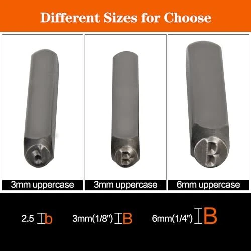 Specifications: Item name: Metal stamping kit Material: Steel, plastic Letter punch specification: 1/8" (3mm) Package weight: 1.45lb Package list: 1 × 26pcs 1/8" (3mm) uppercase letters 1 × 9pcs 1/8" (3mm) numbers punches 1 × "❤" 1/8" (3mm) symbol punch 1 × "&" 1/8" (3mm) symbol punch 【Professional Metal Stamping Set】- You will immediately enjoy the DIY metal stamp set! It includes 37pcs 1/8" (3mm) punch set, including "A-Z" letters, "0-9" numbers, a "&" and "❤" symbol punches. 【DIY Art Stamp Punch】-The same artistic font punch set can freely form continuous phrases and digital imprints to create unique and fashionable hand-stamped jewelry and craft components, such as rings, bracelets, necklaces, earrings, keychains and pendants. 【Easy to Use】- The stamping set is suitable for permanent marking on materials such as brass, steel, plastic, leather, paper, aluminum, silver and stainless steel. Use with a hammer to engrave a variety of commemorative names or numbers on materials including jewelry. 【Premium Material】- The letter punch set is made of premium high-carbon steel material, which is wear-resistant, long-lasting, and very durable. All stamps are produced to a high standard with accurate dimensions and clear strokes. The surface of the product has been polished. 【Easy to Store】- All products are packaged in a sturdy and beautiful plastic box, which is very convenient to store and carry.