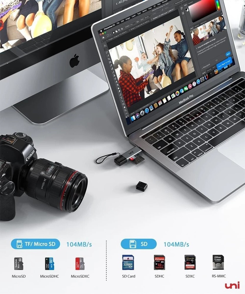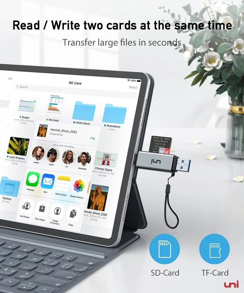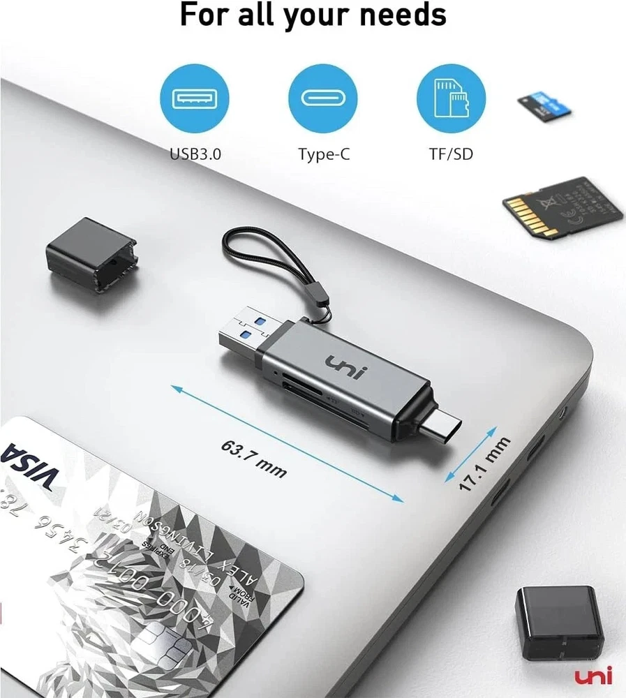 uni SD Card Reader, High-Speed USB C to Micro SD Card Adapter USB 3.0 Dual Slots, Memory Card Reader for SD/Micro SD/SDHC/SDXC/MMC, Compatible with MacBook Pro/Air, Chromebook, Android