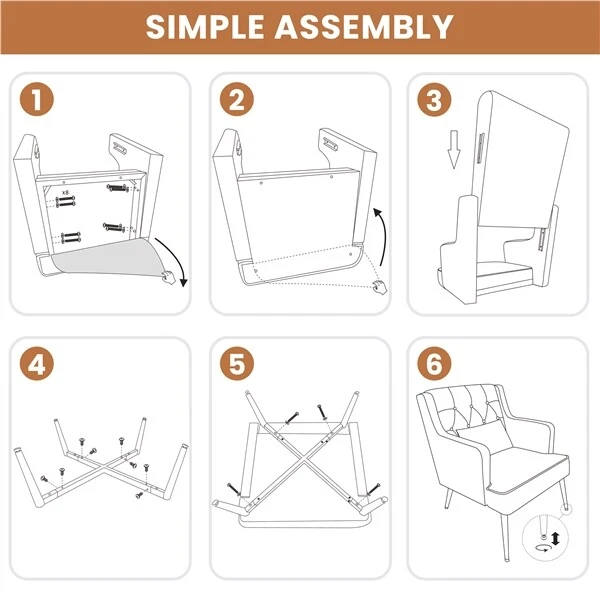store-Template Global bid 35000+ Customer Reviews 7*24h Customer Service 3-7 Business day Estimated Delivery Product Description Pls click here Description: Quick Overview: Looking for ways to create a more inviting atmosphere for your home? This accent armchair is the ideal pick for you! It's built on top of four sturdy metal legs for long-lasting stability and durability. The soft cushion, made of faux leather and foam, ensures a cozy and comfortable sitting experience. Featuring a mid-century modern design, this upholstered armchair adds vintage charm to your home. A wide, slanted backrest, large seat cushion, roomy arms and extra lumbar pillow offer ample comfort and support while reading, socializing, or simply relaxing. Imagine sinking into the chair after a long day at work; it's the ideal addition to your living room, reading nook, bedroom, office, apartment, and more. Specifications: Color: Retro Brown Materials: PU leather, foam, iron, plywood, solid wood, polyester boucle fabric, springs Assembled Dimensions: 64cm W × 72cm D × 79.5cm H / 25.5″ W × 28.5″ D × 31.5″ H Seat Width: 53 cm / 21″ Seat Depth: 51 cm / 20″ Seat Height: 42 cm / 16.6″ Arm Height: 58.5 cm / 23″ Maximum Weight Capacity: 136 kg / 300 lb Item Weight: 14.4 kg / 31.6 lb Shipping Weight: 16.7 kg / 36.8 lb Note: Please allow a 1.5cm/0.6” measurement tolerance. Specifications: Materials: PU leather, foam, iron, plywood, solid wood, polyester boucle fabric, springs; Color: Retro Brown; Overall Dimensions: 25.5” L × 28.5” W × 31.5” H; Maximum Weight Capacity:300 lb. Generous T-cushion Seat: The deep foam-filled seat with sinuous springs measures 21x20 inches (WxD) and provides plenty of support and elongated plushness as you read, watch TV, or converse with visitors. Soft yet Supportive: The 6’’ thick seat cushion is filled with high-resiliency foam and supported by the sinuous wire spring system for an ideal balance between softness and support. The broad, angled back with a fiber-filled lumbar pillow enables you to kick back for complete relaxation. Track Arms: The 2.4″ wide track armrests of this living room chair offer enhanced comfort for your forearm and wrist while adding a contemporary edge to your space. 20-minute Setup: We prepare illustrated instructions, tools and hardware in the package. The simple structure of this lounge chair allows for a straightforward setup. It won’t take you over 20 minutes. Please Your Eyes: This elegant armchair features a refined wing side back and clean track arms, bringing soft lines to your home or office settings. The wood-tone, splayed legs flawlessly complement the button-tufted faux leather upholstery, enhancing the attractive appeal of this reading chair. Stay Balanced & Protect Your Floor: The X-shaped metal legs are made for strengthened stability and high weight capacity. This modern accent chair also has height and tilt adjustable foot pads that accommodate uneven floors and prevent scratches and slippage Packing List: 1 x Accent Chair 1 x Lumbar Pillow 1 x Instructions 1 x Accessory Kit Pls click here Payment 1. Payment should be completed within 4 (Four) days of auction closing. Or unpaid dispute will be filed for closing auction automatically. 2. If for some reason there is any issue with the payment, please contact us, and we will be glad to work with you to have it resolved. Shipping 1. We have 3 warehouses located in CA, IL and NY, so your parcel will be shipped from one of them. 2. Package handling only takes 1 business day at our warehouse, so please make sure entering correct payment and shipping information before checking out. 3. According to eBay policy, we only ship to eBay ADDRESS. Once your payment is completed, you can leave eBay note or click the button named “contact seller” in your purchase history if the changes are needed before we send the product. 4. If an address change is needed after sending your item, you will be responsible for any fees associated. 5. Orders placed on weekend will be shipped within 2 days. 6. Fedex:2-6 business days; UPS: 2-6 business days; USPS: 3-9 business days. 7. We only ship to the Mainland 48 states, and we do not ship to Alaska, Hawaii, FPO or APO Terms of sales 1. All of our items come with a 30-day return policy. We ensure all our items are new and in excellent condition prior to shipping. In the event that you receive the item that is not to the standards above, please contact us via eBay messages. All returns should be shipped with delivery confirmation. 2. Please note that all returns must be pre-approved by globalbid. Unauthorized returns will not be accepted. If you need to return, please check twice to confirm the item not work and contact our customer service representative, let us know the detailed problem and send us some pictures for confirmation. 3. All NON-seller mistake returns for refund are subject to 20% re-stocking fee and buyer should pay for the round-trip shipping fee. (E.g. you bought wrong model or wrong color). 4. We ONLY accept the return for original package. Please make sure that item has NO man-made sabotage. Used items will not be accepted for return. 5. We reserve the right to refuse any returns for objective reasons. Feedback 1. If you are satisfied with the product you received, please leave us positive feedback and 5 star comment, which will be highly appreciated. 2. If there is any problem about your order, please contact seller prior to leaving feedback, and we will be glad to work with you to have it resolved. 3.If you are dissatisfied for any reason, please do not be quick to leave negative or neutral feedback. We’ll try our best to resolve any problem for you to make EACH CUSTOMER 100% SATISFIED and always leave positive feedback to all our customers. Contact us Before purchasing, you can contact us directly by clicking "Ask a Question" at bottom of this page. 2. After purchasing, you can contact us by clicking the button named “con
