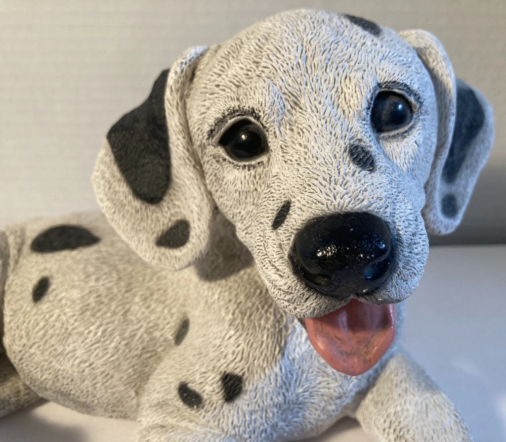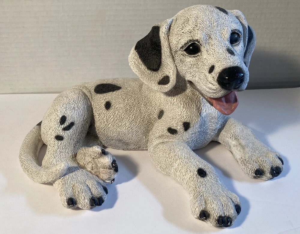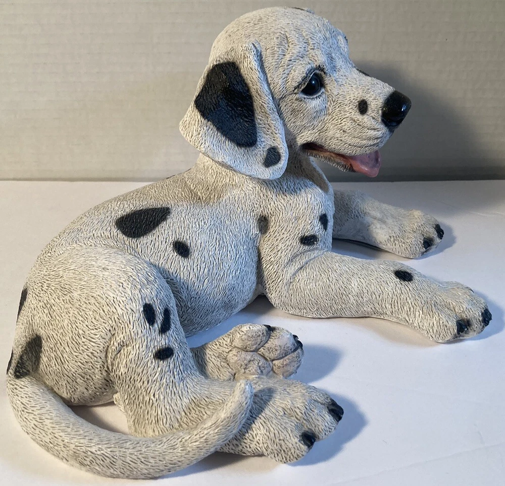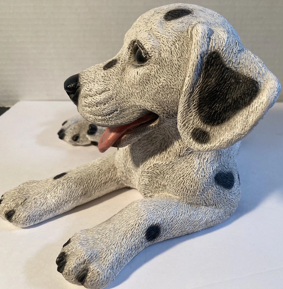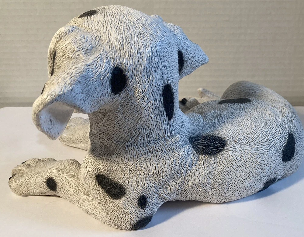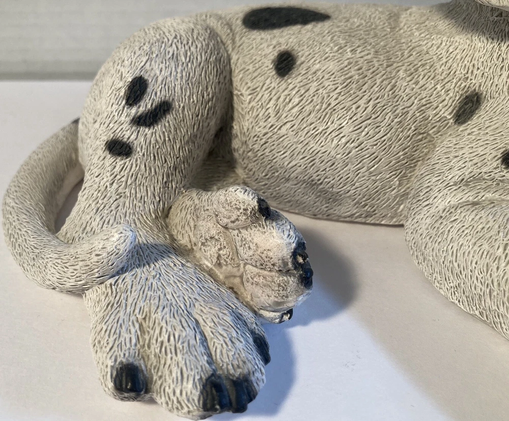 1988 original Castagna Dalmatian figurine 10" across, 5 1/2" high textured piece happy puppy in that happy puppy position! paws flat with tongue out! resting after a nice game of fetch! such a good pup in such great condition! Please note: item is aged with minor signs of aging noted to paint on front paws but remains in overall excellent condition, see photos for details!