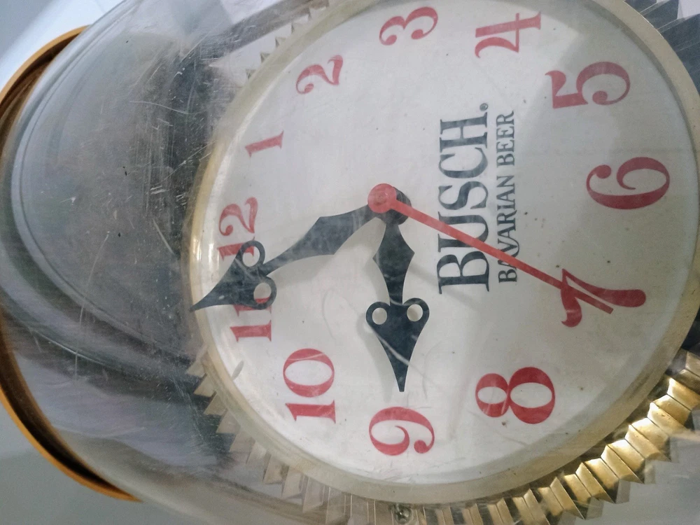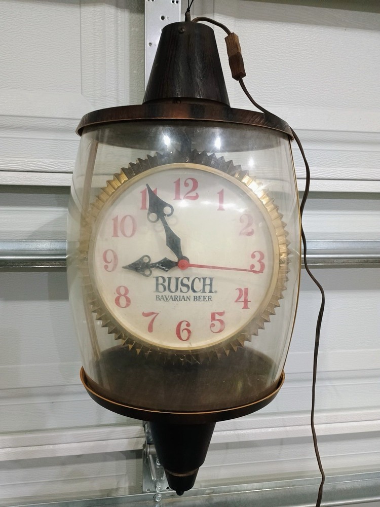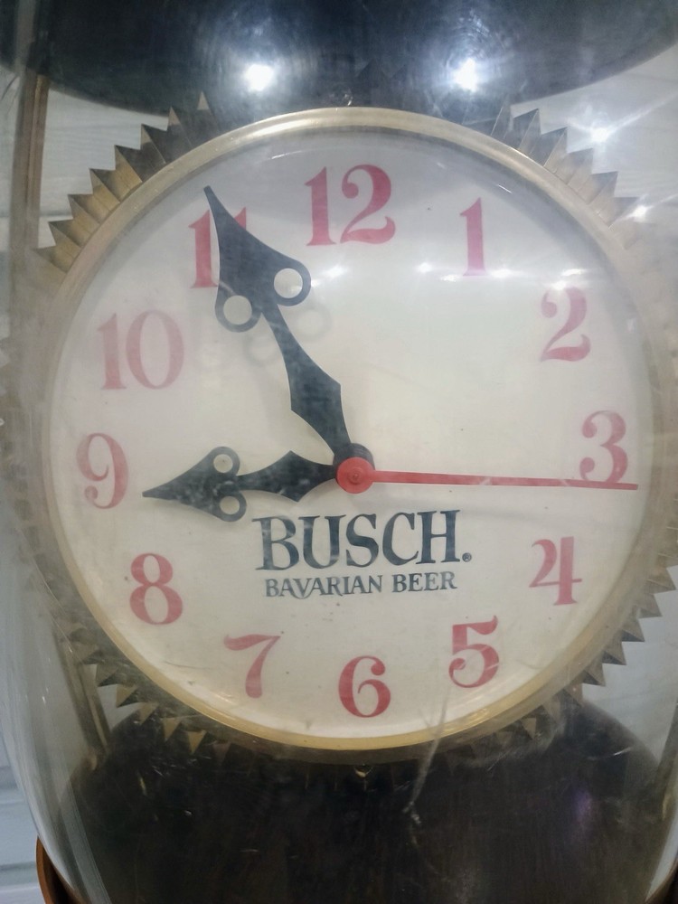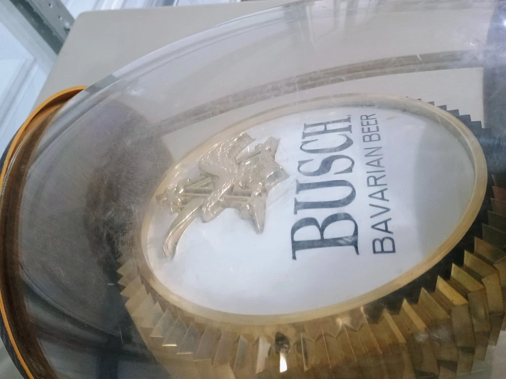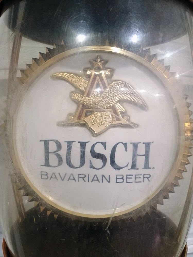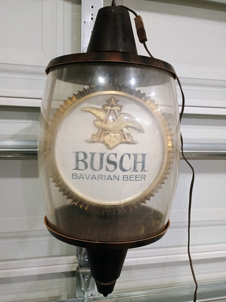 This vintage Anheuser-Busch Busch Bavarian Beer advertising lamp is a unique and eye-catching collectible piece for any beer enthusiast or collector. With a theme centered around breweriana, this lamp showcases a classic design from the famous beer brand, making it a standout addition to any collection. Perfect for adding a touch of nostalgia or vintage charm to a room, this lamp is sure to be a conversation starter for those who appreciate the history and artistry of beer advertising.