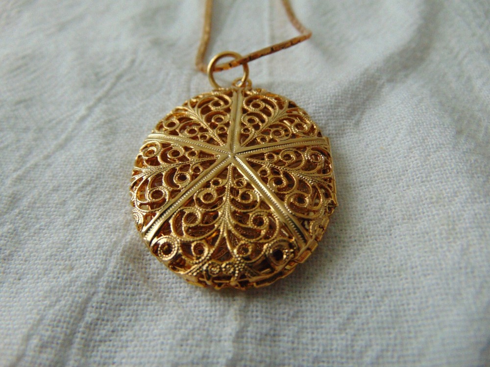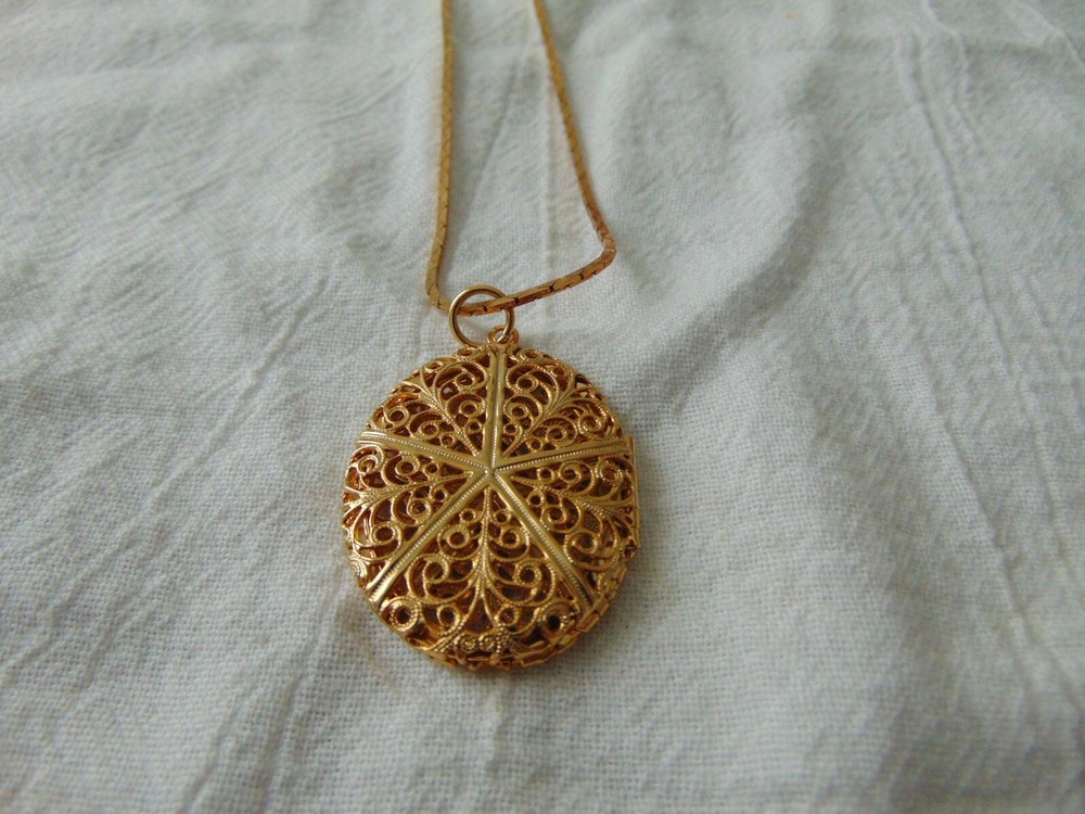 17 inches long with a 2 inches long filigree locket pendant. very beautiful.
