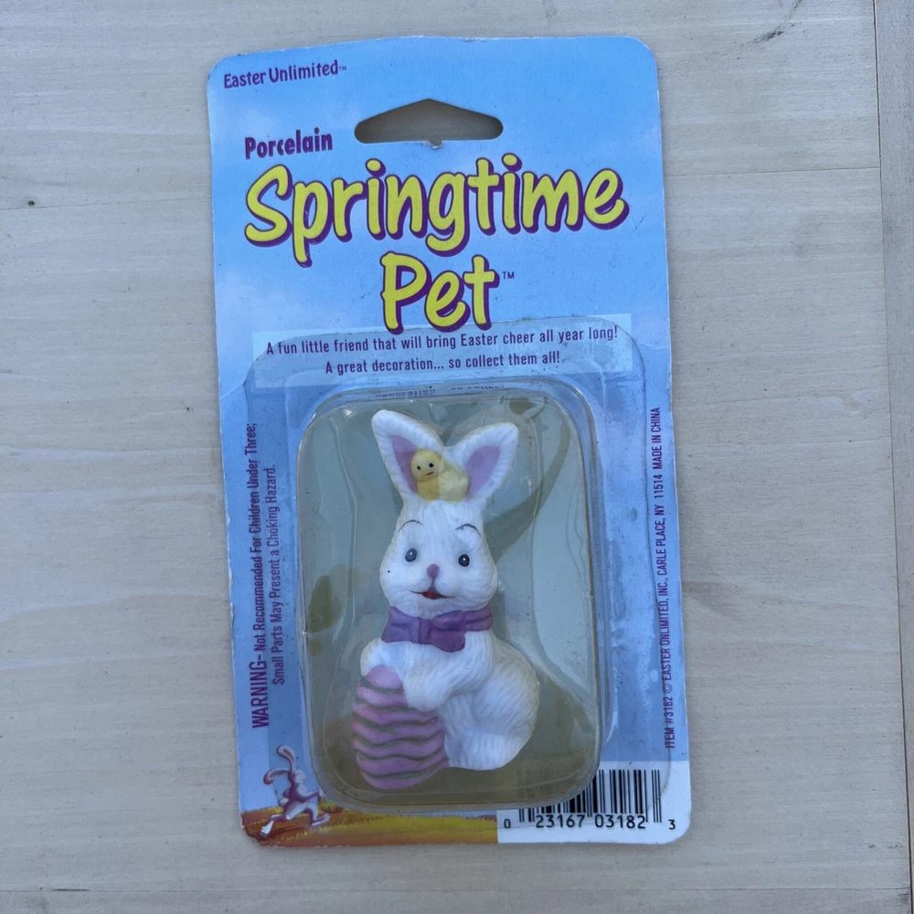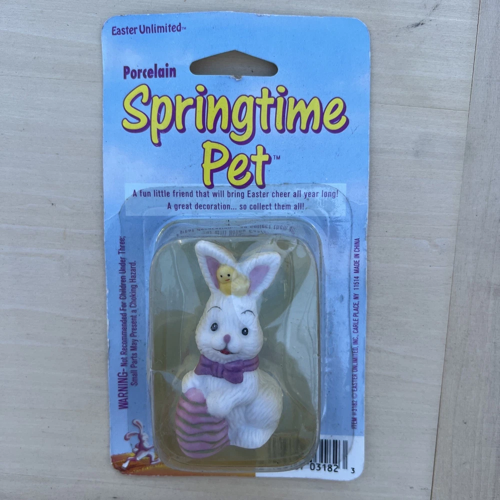 This vintage porcelain Easter bunny figurine is a charming addition to any collection. Crafted with delicate porcelain material, it exudes elegance and is perfect for Easter decorations. The bunny's soft and fluffy appearance is sure to bring a smile to anyone's face. Whether you're a collector or just looking for a unique decoration, this figurine is a must-have.