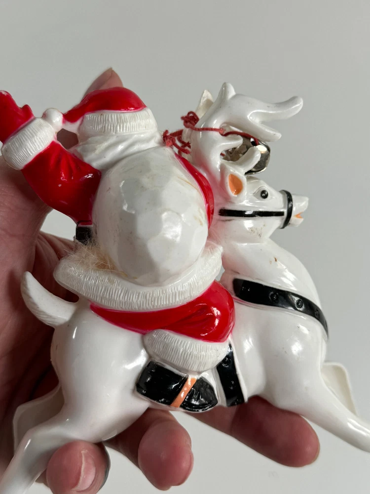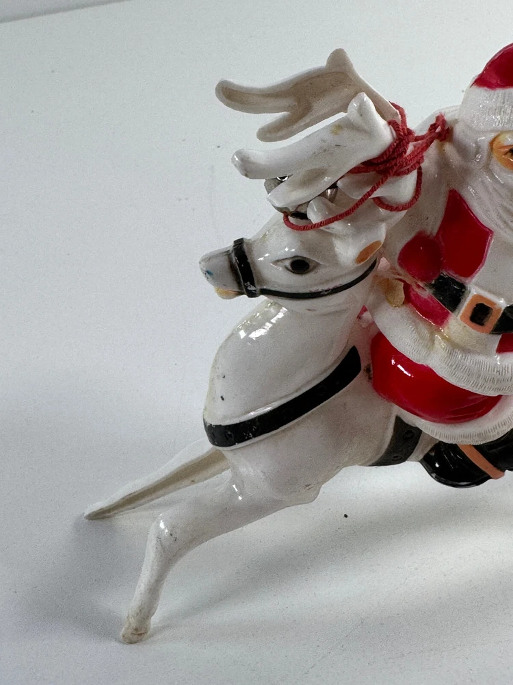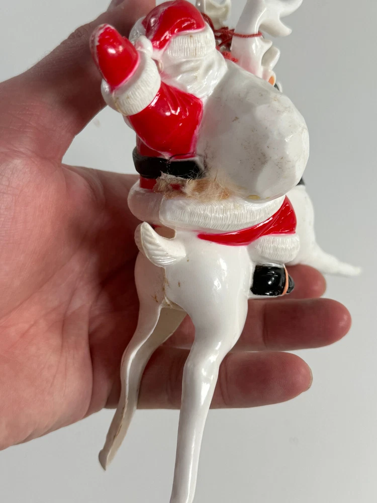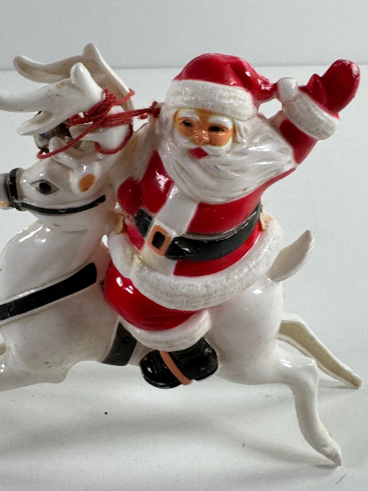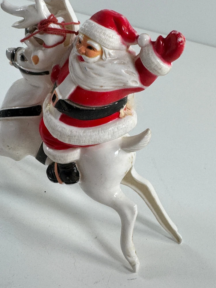 vtg Christmas Xmas 50s 60s Santa Claus on Reindeer hard plastic