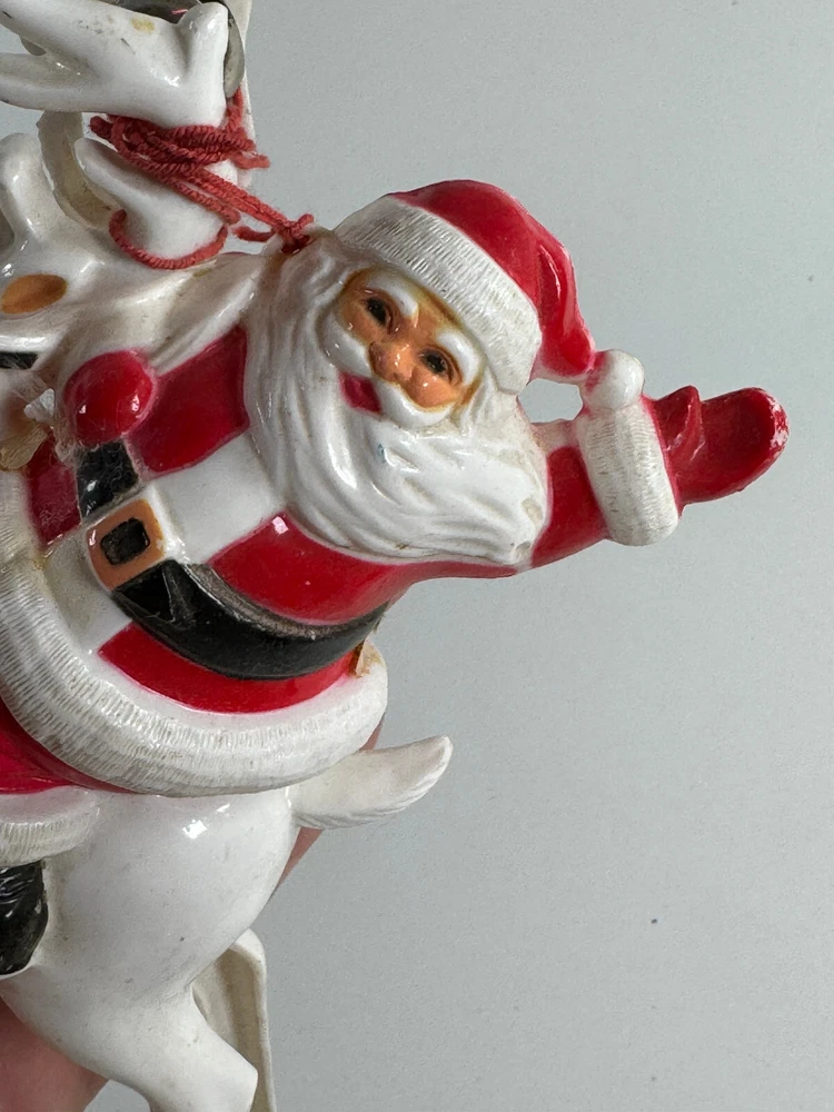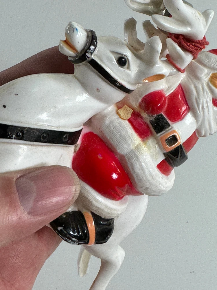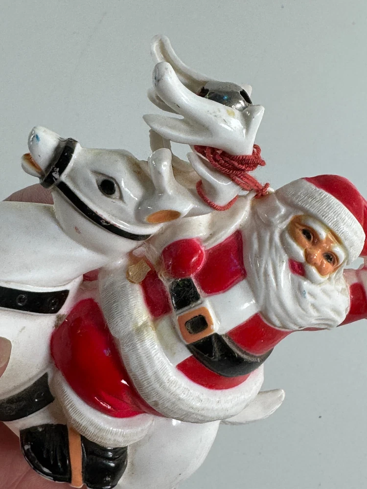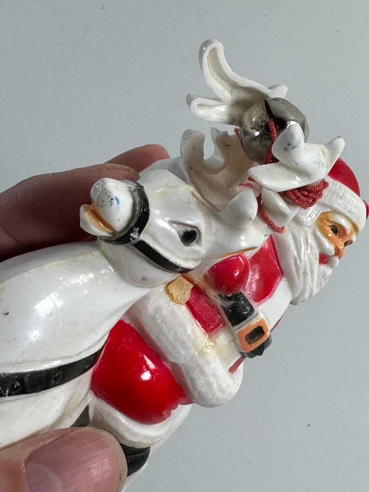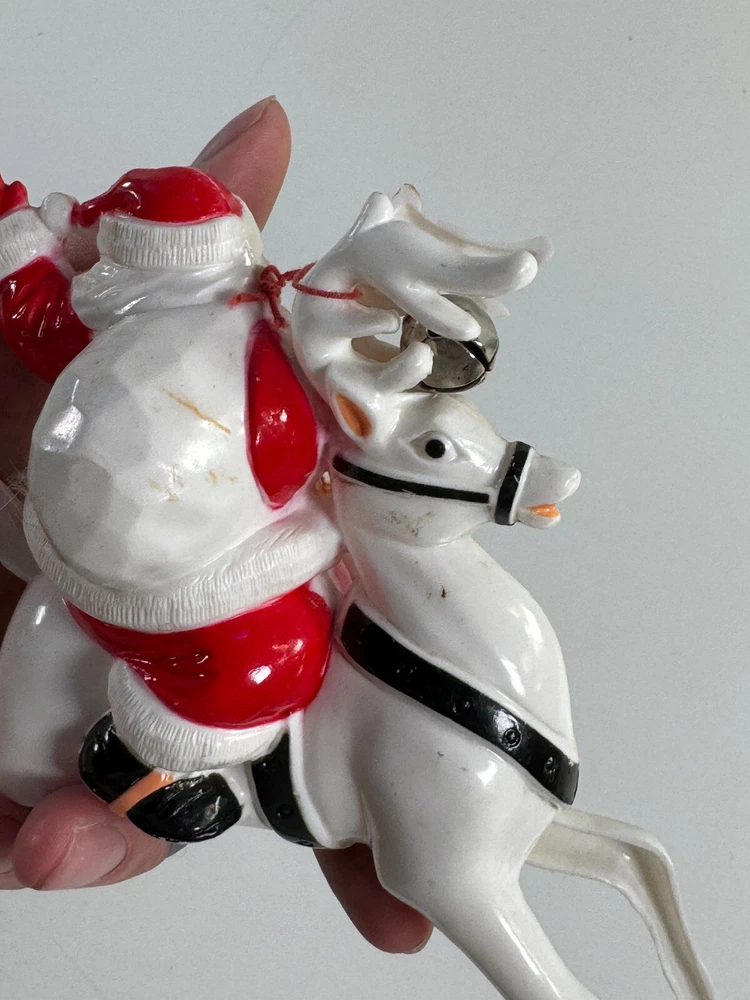 vtg Christmas Xmas 50s 60s Santa Claus on Reindeer hard plastic