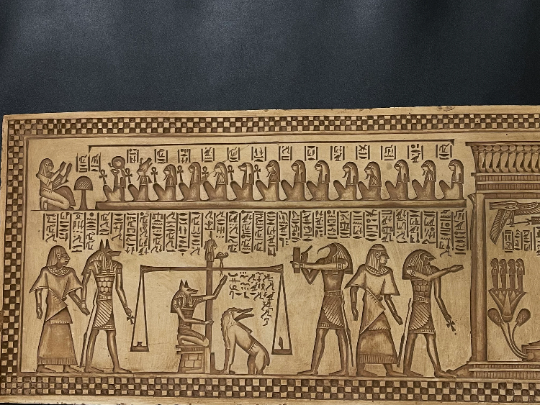 "Tariff-Free Treasures Await!" Brand: EgyptologyStoreEG. Item Description: Your unique wall relief of the Judgment day Tablet contains sculptures of The ANUBIS (God of the Dead) , made from Real Lime stone that comes from Luxor desert , special made for pharaohs lovers ;) a very unique piece you will never find it anywhere ;) unique piece you will never fin it anywhere :) Ancient sculpture replica from the original one, 100% Egyptian HAND MADE Made from Lime Stone Height: 12 Inches Width: 28 Inches MADE IN EGYPT Return Policy: You can return our product and get a full refund or exchange the product with another one, however the the conditions must be met. . Feedback is highly appreciated :)