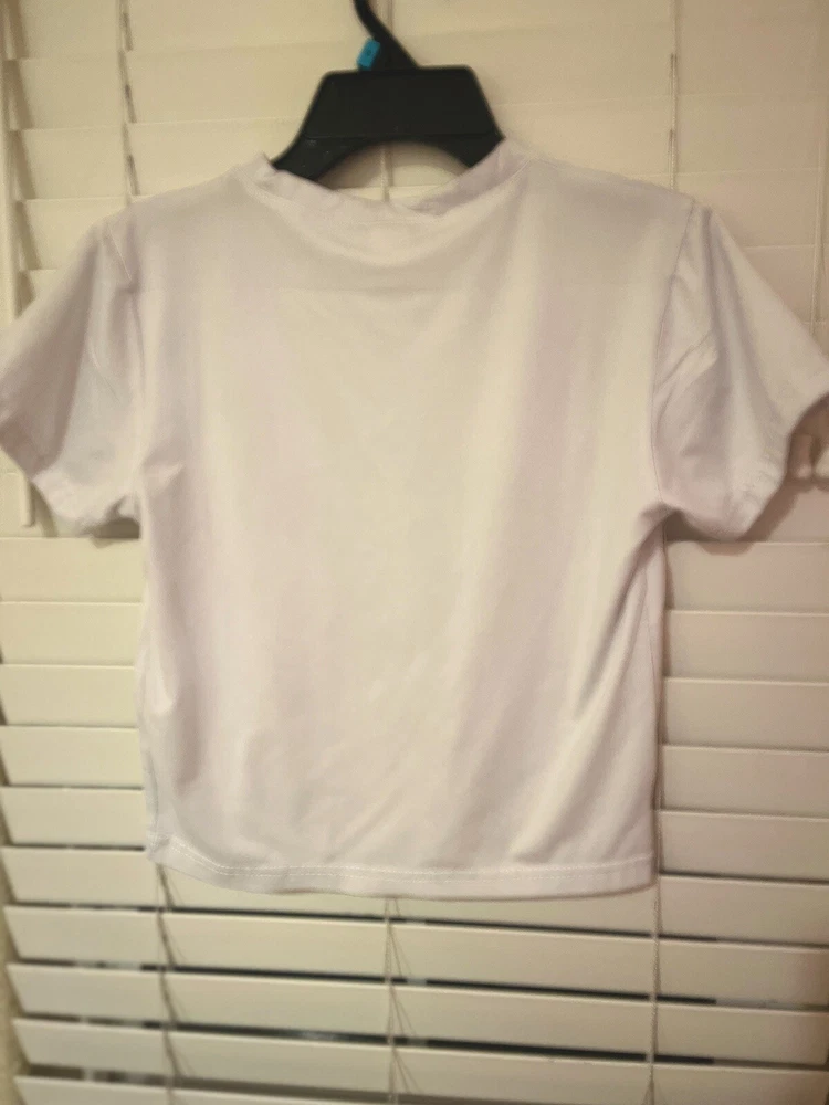 white crop top kitten y2k. Shipped with USPS Ground Advantage.