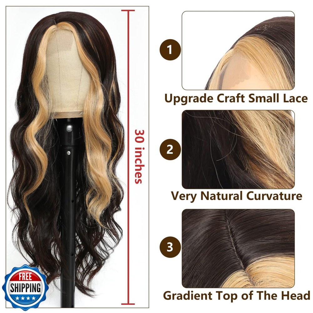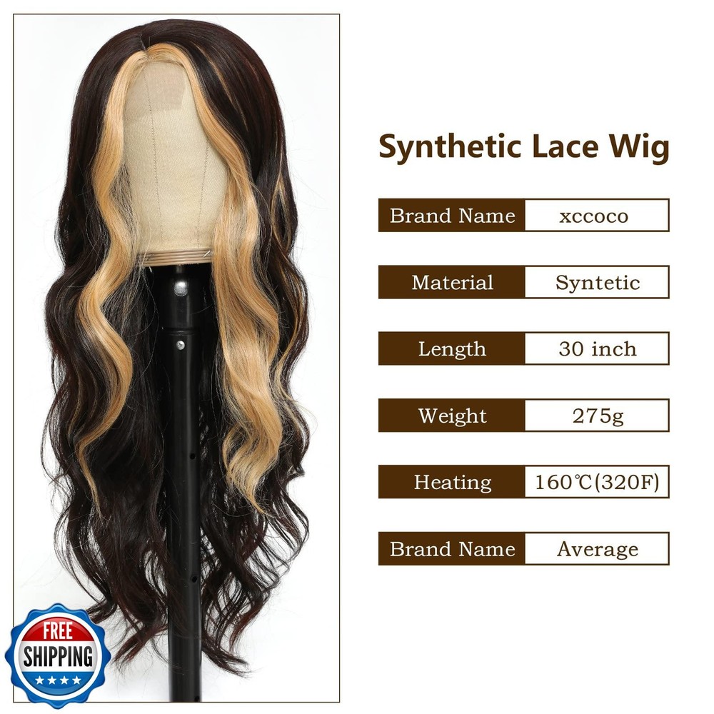 xccoco Long Wavy Wigs for Women Black Highlighted Wig Body Wave Synthetic Lace Wig 28inch Black Wig with Blonde Streaks Highlight Wig Heat Resistant Curly Wavy Side Part Wig Features Superiority:The magic place for a wig is that it makes you more gorgeous, and you deserve to have it. This Black Long Wavy Wig has a natural hairline, which makes the wig more natural and realistic MaterialHigh quality imported premium synthetic fiber, feel like human hair and scalp, Ventilative, comfortable for daily wear. Wig Comes with suprise nice gifts Gorgeous Look: Long wavy black wig with infinite charm, will make you the focus of everyone when wearing it, natural black, skin friendly and healthy, very suitable for daily, dating, party, weddings Adjustable Breathable Net:It has breathable rose net is soft, resilient inner net, the elastic adjustment belt is set at the back, and the size is adjusted, is suitable for various head sizes and shapes, comfortable and not stuffy when wearing Please Note: All wigs will shed slightly especially when you wear for the first time, which is normal Shipping Free & Fast Shipping: We offer free shipping to most of the USA with a normal delivery time of 3-7 days. However, due to the current situation, additional delivery time (up to 3 weeks) may be required for some items. Alternative Carriers: We may use alternative carriers (e.g., USPS, FedEx, UPS) to ensure your package arrives safely and on time. Due to the use of multiple carriers, we are unable to provide a tracking number automatically. Handling Time: Orders are processed and shipped within 1-2 business days of receiving cleared payment. Shipping Restrictions: Shipping to Alaska, Hawaii, Puerto Rico, Guam, and other US territories may incur shipping charges or delivery restrictions. Please contact us before ordering, or your order can be refunded/cancelled. State Restrictions: Certain items may not be shipped to California due to state regulations. Contact for Tracking Updates: If you require tracking updates or have any concerns about the delivery of your order, please feel free to contact us, and we will be happy to assist you. Return Policy 30-Day Hassle-Free Returns: If you are not completely satisfied with your purchase, you can return the item for free within 30 days of receiving it for a full refund or exchange. Easy Return Process: Contact us, and we will provide you with a prepaid return shipping label and detailed instructions. No Restocking Fee: There are no restocking fees for returns. However, the buyer is responsible for return shipping costs if the return is not due to a seller"s error. Refund Processing: Refunds will be processed within 1 business day of receiving the returned item in its original condition. Feedback Your feedback is extremely important to us. We strive to provide the best products and customer service possible. If you are satisfied with your purchase, please take a moment to leave us a positive review. If you have any concerns or issues with your order, please contact us before leaving negative feedback. We are committed to resolving any problems and ensuring your satisfaction. Contact Us If you have any questions or concerns, please feel free to reach out to our customer support team. You can contact us through the eBay messaging system. We are available Monday to Friday, 9:00 am to 5:00 pm EST, and we will do our best to respond to your inquiry within 24 hours. Thank you for supporting our small family business!