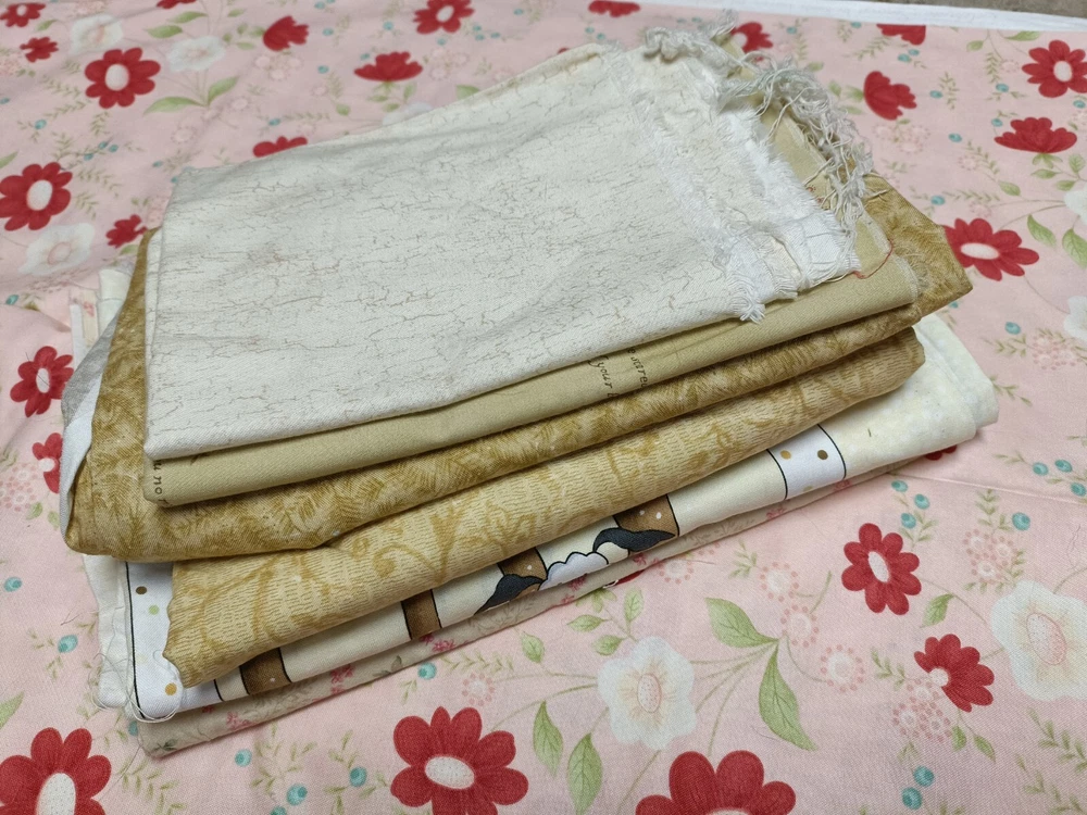 Lovely yellow/beige cotton quilting scrap fabric lot. Fabric is cut in different sizes. Includes florals, vintage motifs, picturesque cartoons, etc. high quality cotton.
